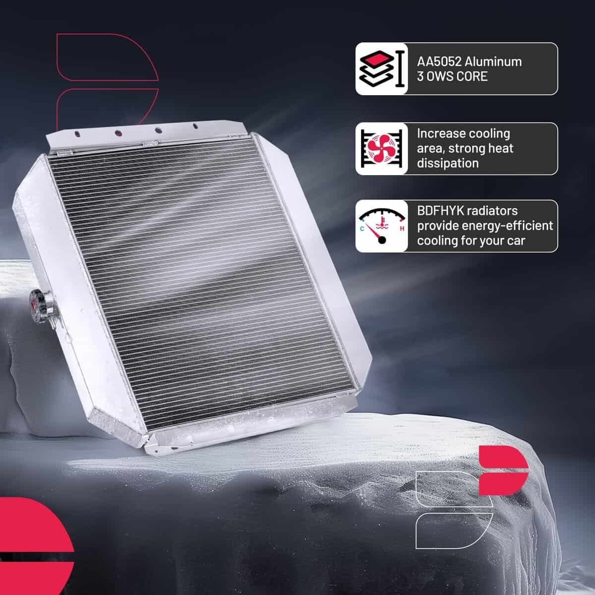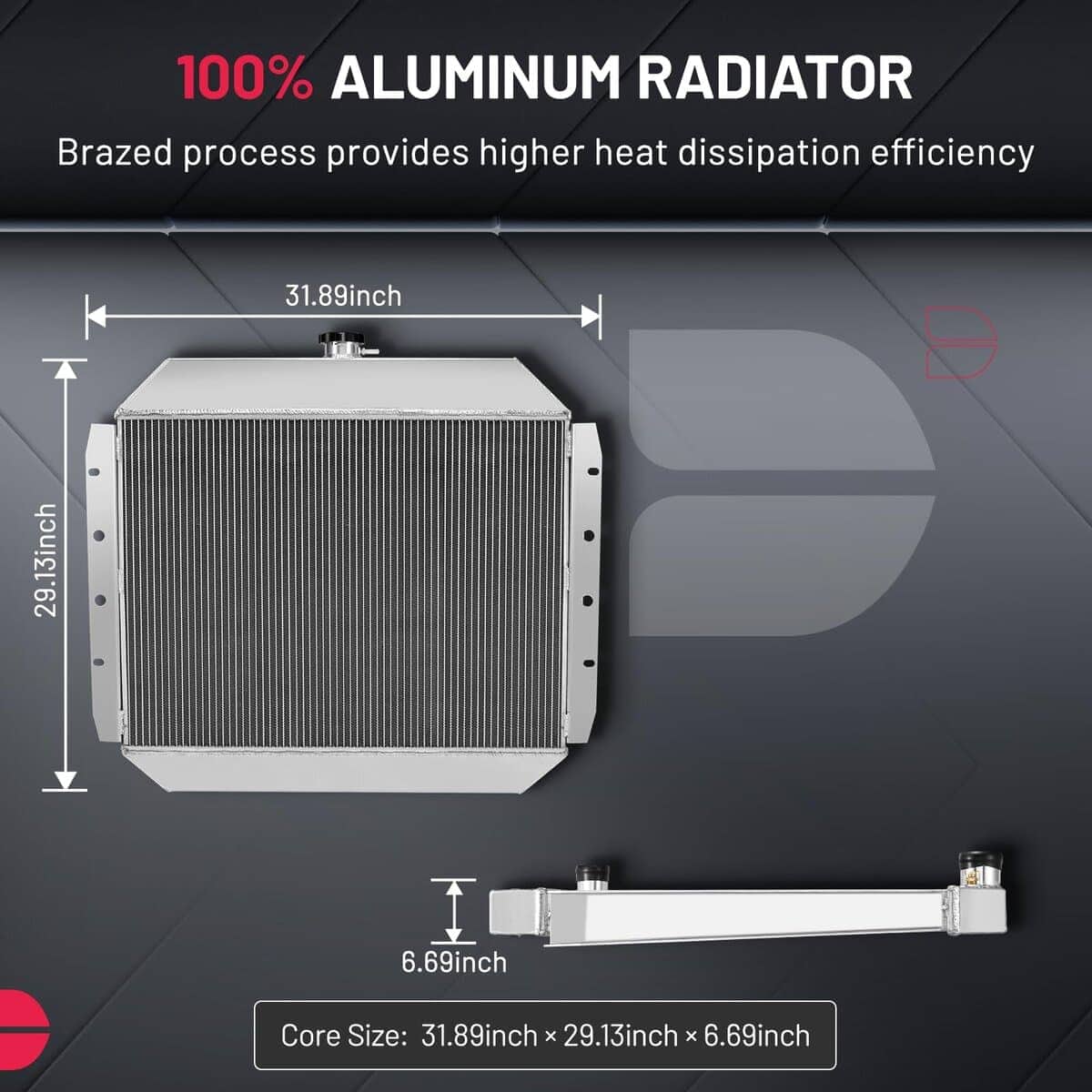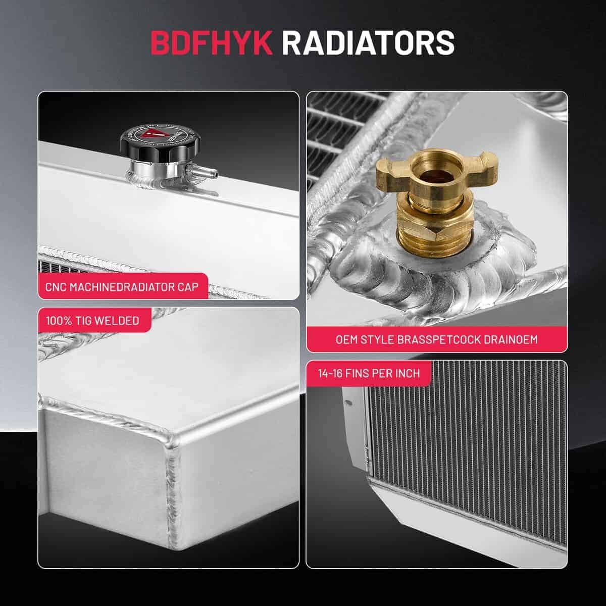 – Radiador de aluminio de alto rendimiento con un diseño de carreras, 30%-35% más eficiente en el enfriamiento, mayor capacidad de refrigerante que los radiadores comunes, previene fallas en el motor, experiencia de conducción superior. – Partes 100% nuevas de calidad OEM estándar, aluminio de grado aeroespacial AA5052, probado en durabilidad y resistencia a condiciones climáticas extremas, tecnología de núcleo de soldadura, 100% probado en fugas, fabricado y diseñado bajo el sistema de calidad ISO TS16949, ajuste perfecto a la carrocería. – Incluye: 1 X Radiador de aluminio 3ROW-44mm AA5052, 1 X Tapa de radiador de aluminio CNC. – Diseño de carreras de alto rendimiento adaptado a transmisión AT, núcleo de tubos 3ROW-44mm de diseño de carreras, grifo de latón estilo OEM para drenaje, Dimensiones del núcleo: 18.90″ 25.91″ 1.73″, Dimensiones totales: 32″ 29″ 7″, Tamaño de entrada/salida: 1.77″ 1.97″, Enfriador de transmisión: 26 305. – Compatible con Ford Bronco 1978-1979, F-100 1968-1979, F-150 1975-1979, F-250 1968-1979, F-350 1968-1979, F-500 1976 Número OEM: 433, SBR433, CC433, EC433, AE433, MC433, CU433, DPI433, DPI433, DPI132, CU132. – El radiador BDFHYK ofrece una garantía de producto de un año y una política de devolución gratuita de 60 días, Recomendamos que verifiques la compatibilidad del vehículo al seleccionar un producto y confirmes la integridad de la pieza al momento de la entrega.