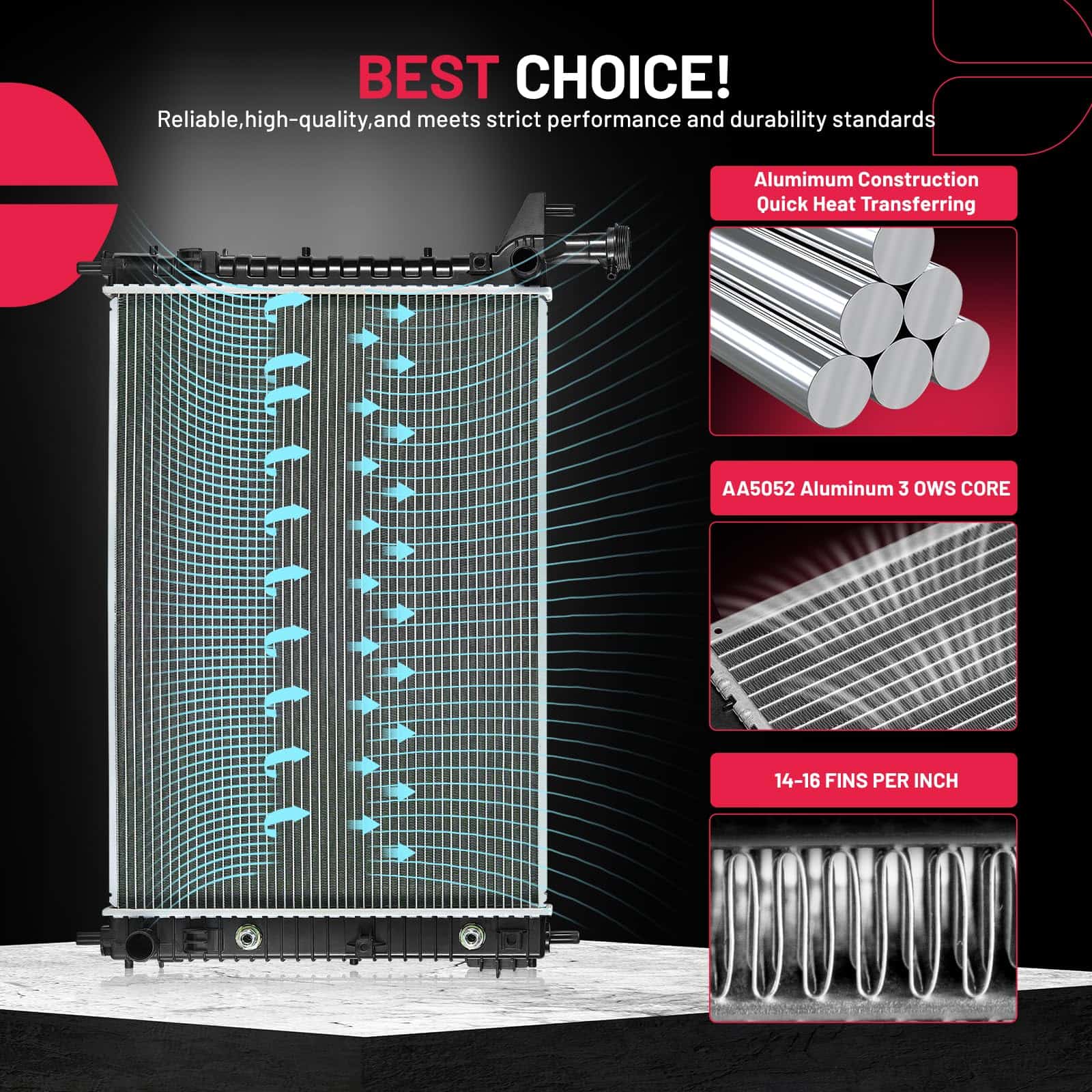 1. Compatible con Buick Enclave 2008-2017; Chevrolet Traverse 2009-2017; GMC Acadia 2007-2016; GMC Acadia Limited 2017; Saturn Outlook 2007-2010 3.6L V6. 2. Número de parte 13006, CU13007, 8013007, RAD13006, 20841737, 22893856, 23347008, 23434159. Asegúrese de elegir el tamaño y la especificación correctos del radiador para el modelo y motor de su vehículo. 3. Grosor del radiador 26MM. Los núcleos de aluminio pueden prevenir la corrosión, prolongar la vida útil, tener un mejor rendimiento de disipación de calor, una mayor conductividad térmica y características ligeras, y pueden transferir más eficazmente el calor al entorno circundante, asegurando durabilidad en climas extremadamente calurosos o fríos, y maximizando la eficiencia de enfriamiento. Todos los productos han pasado la prueba de hermeticidad. 4. PAQUETE INCLUIDO 1x Nuevo radiador completo y 1x Especificación del producto, estándar OEM para una instalación fácil. 5. SERVICIO AL CLIENTE BDFHYK valora su experiencia de compra, por cualquier razón que no esté satisfecho con la calidad, no dude en contactarnos, ofrecemos un y proporcionamos un servicio de correo de 24 horas para ayudarlo lo antes posible.