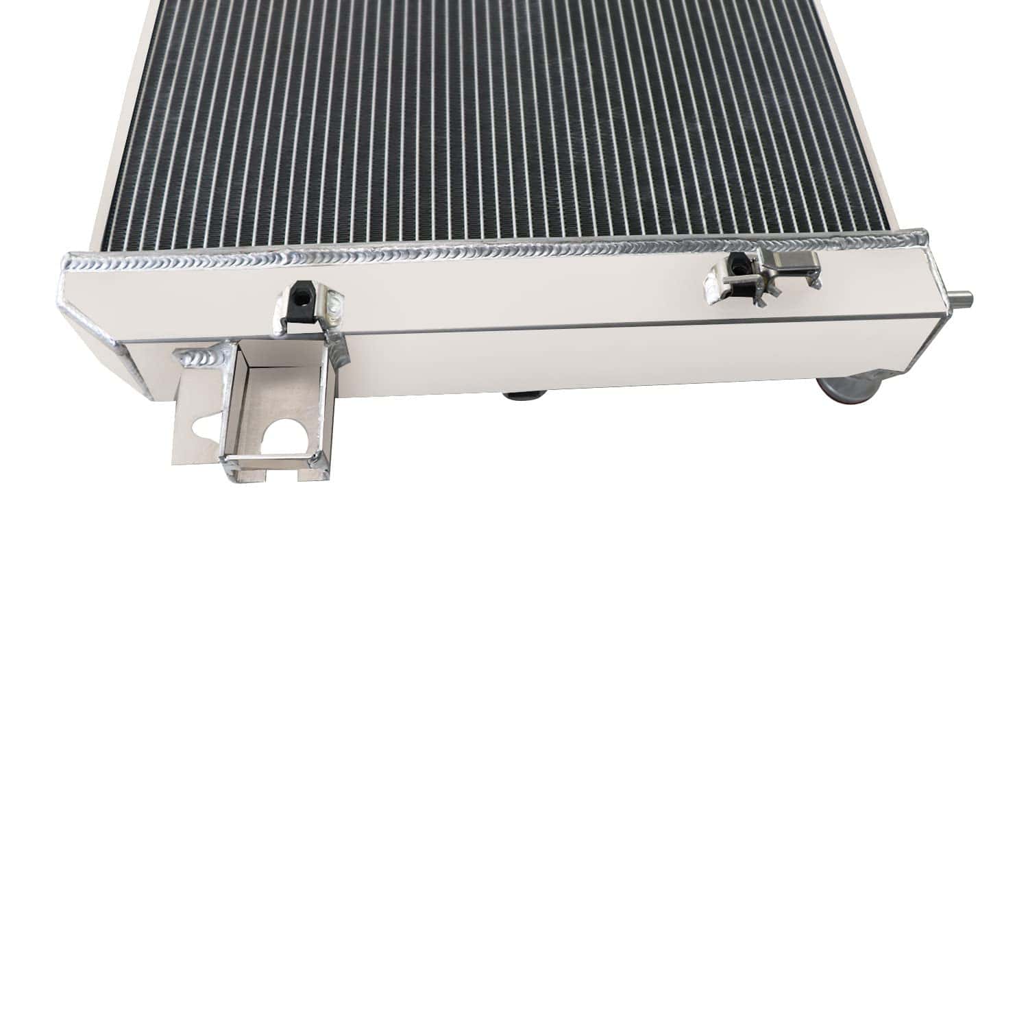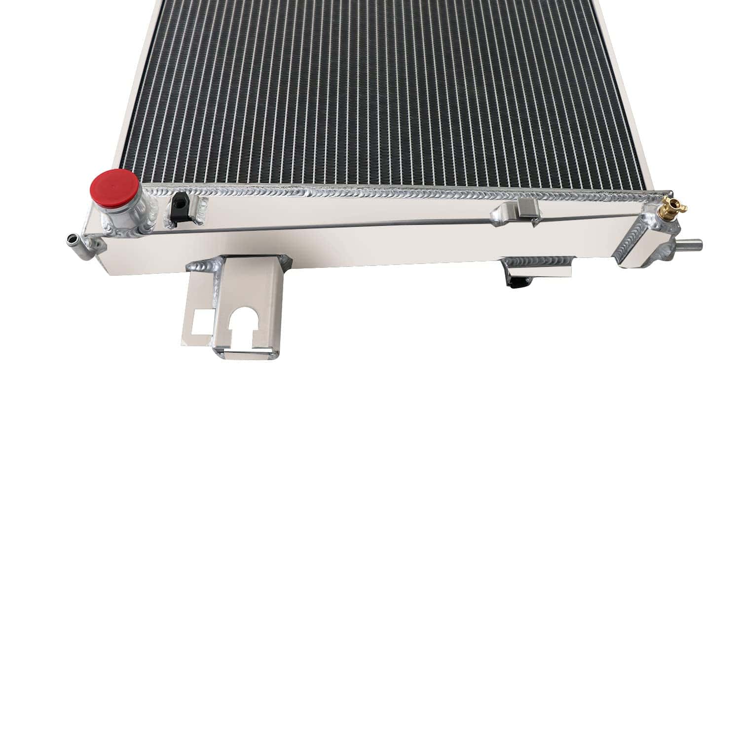Este radiador de aluminio está diseñado para proporcionar la máxima eficiencia de enfriamiento para prevenir fallos prematuros del motor. Su diseño liviano y de aluminio con alta transferencia de calor presenta un diseño de tubo y aleta que aumenta drásticamente la superficie que permite que el calor se disipe de manera más eficiente. Este radiador de aluminio es al menos un 30%-45% más eficiente que los radiadores de serie. Lo más importante es que tiene una capacidad mucho mayor de refrigerante que los de serie, lo que significa que su sistema de enfriamiento será más eficiente y más resistente a las variaciones de temperatura en aplicaciones de carreras.