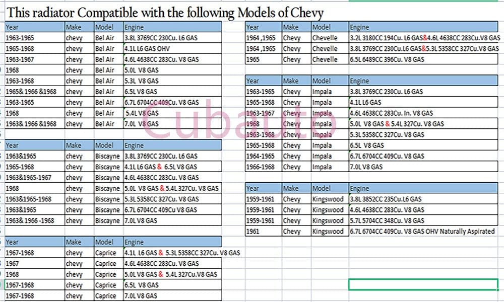 Para Chevy Caprice 1966 1967 1968 Todos los motores