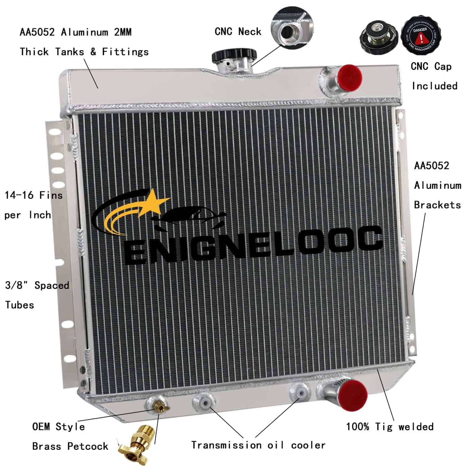 Radiador de Aluminio de 3 Filas Enignelooc para Ford