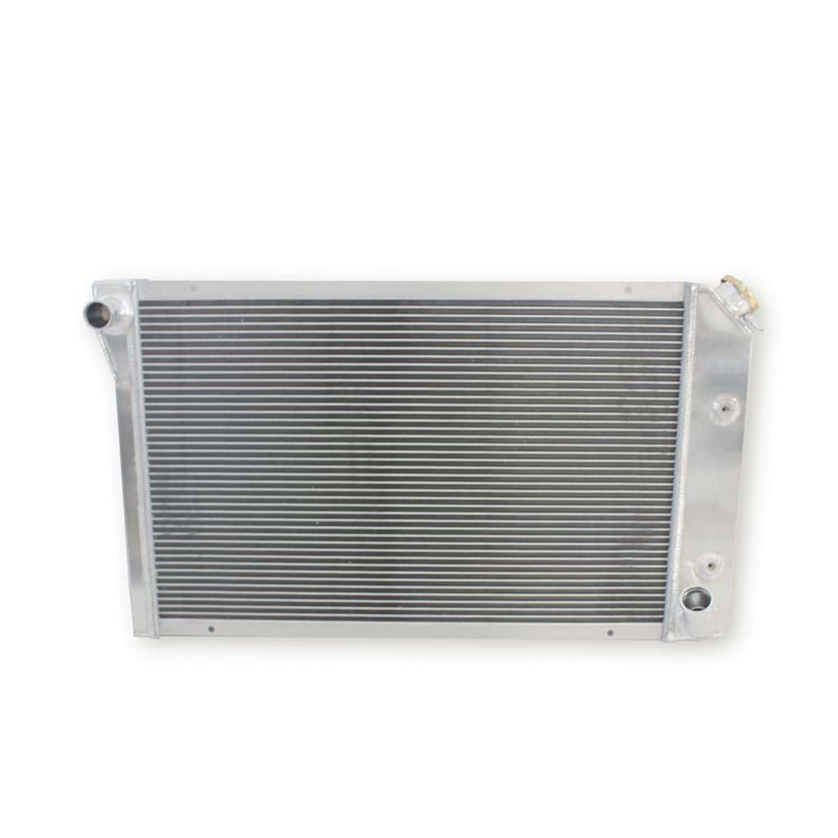 Radiador de aluminio de 3 filas OHOB-COOL diseñado para adaptarse a Chevy Chevrolet Corvette 1977-1982 con motor 5.0 5.7L V8. Este radiador ofrece un rendimiento excepcional, con una eficiencia de enfriamiento de 35-45% superior al radiador de serie. Su diseño permite una disipación de calor más eficiente, lo que ayuda a prevenir fallos prematuros en el motor. El tamaño total del radiador es de 32.25″ de ancho y 18.75″ de alto, incluyendo la entrada y salida. La entrada/salida tiene un tamaño de 1.34″/1.57″ (34/40mm), y cuenta con un enfriador de transmisión incluido (26 205 G1/4(Z)). Este radiador es una excelente opción para mejorar el rendimiento de tu Chevy Corvette y mantener el motor en óptimas condiciones.