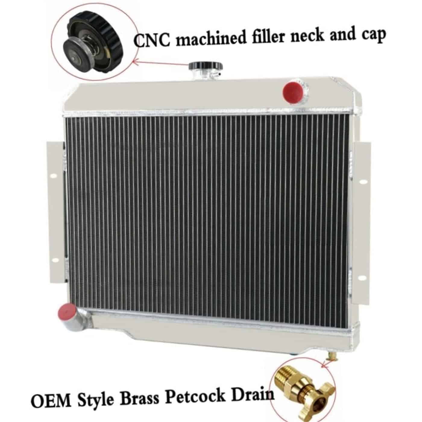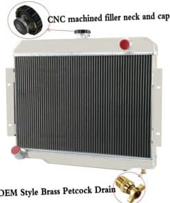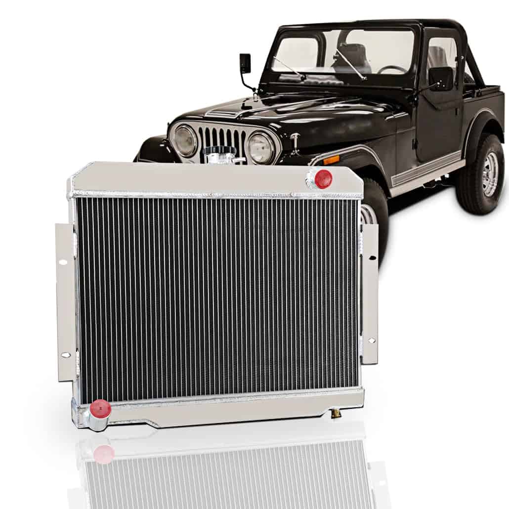 Este Radiador de aluminio AA5052 está diseñado para proporcionar la máxima eficiencia de enfriamiento para prevenir fallo prematuro del motor. Su aluminio liviano y de alta transferencia de calor cuenta con un diseño de tubo y aleta que aumenta drásticamente la superficie que permite que el calor se disipe de manera más eficiente. Este Radiador de aluminio AA5052 es al menos un 30%-45% más eficiente que los originales. Lo más importante es que tiene una capacidad mucho mayor para el refrigerante que los originales, lo que significa que su sistema de enfriamiento será más eficiente y será más resistente a las subidas de temperatura en aplicaciones de carreras. Radiador: Fila: 4 Núcleo de fila Material: Todo aluminio Tapa del radiador: incluida Núcleo y tanque: todo aluminio Tamaño del núcleo: 23.75″ x 15.75″ Tamaño total: 24.25″ x 20.75″ Entrada superior: 1.50″ Salida inferior: 1.50″ Ajuste del vehículo: Para Jeep CJ5 3.8L / 4.2L / 5.0L 1972-1983, Para Jeep CJ6 Todos los modelos 1973-1975, Para Jeep CJ7 3.8L / 4.2L / 5.0L 1976-1986