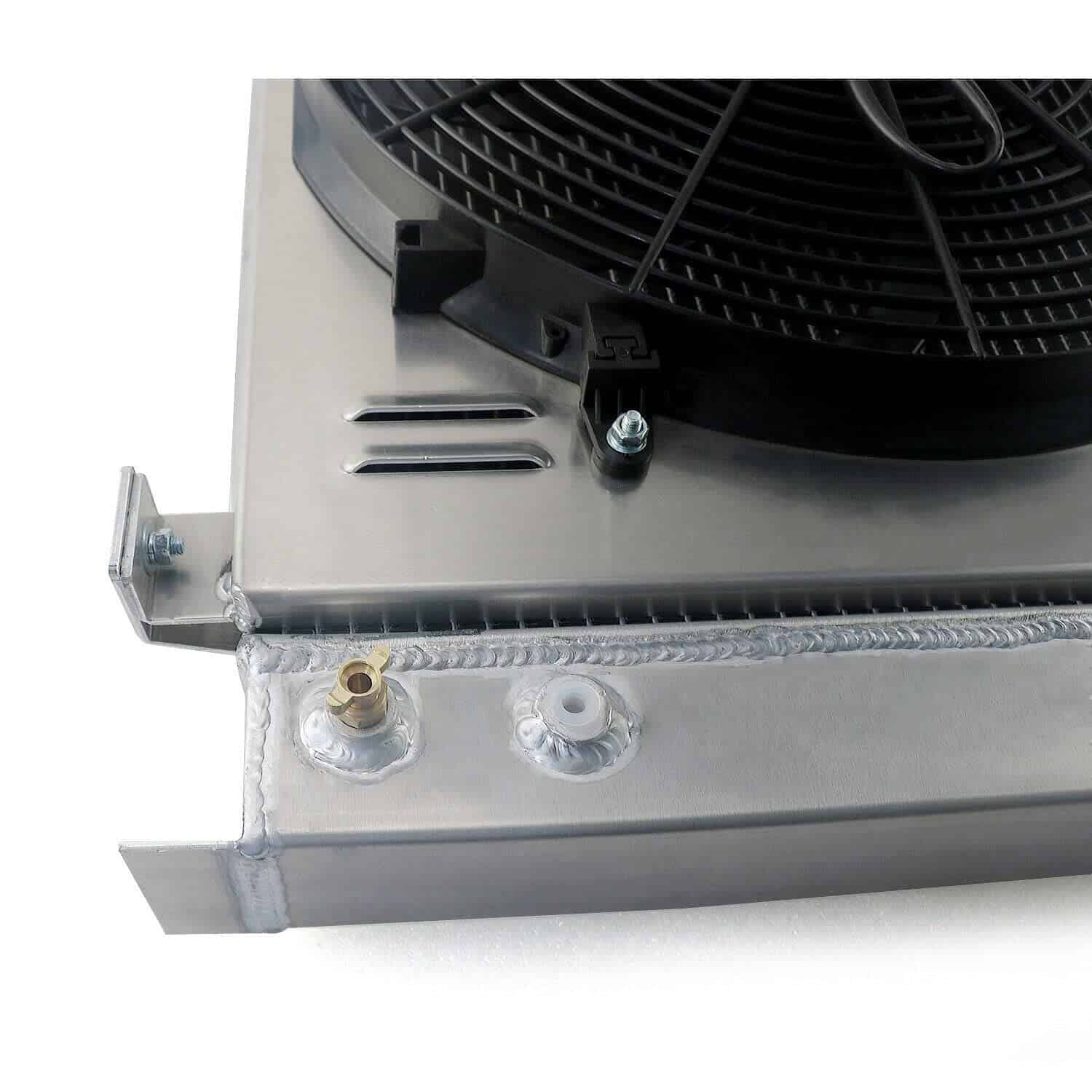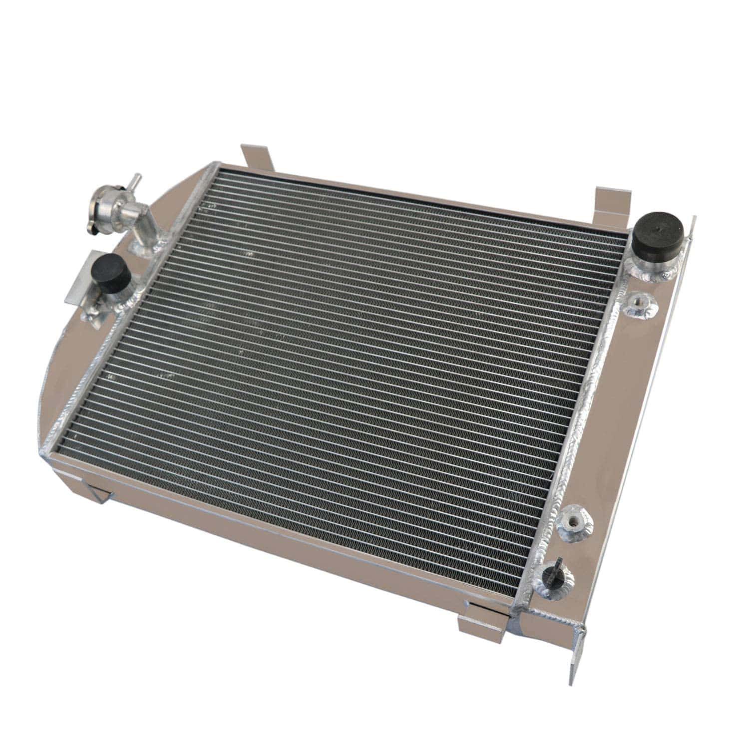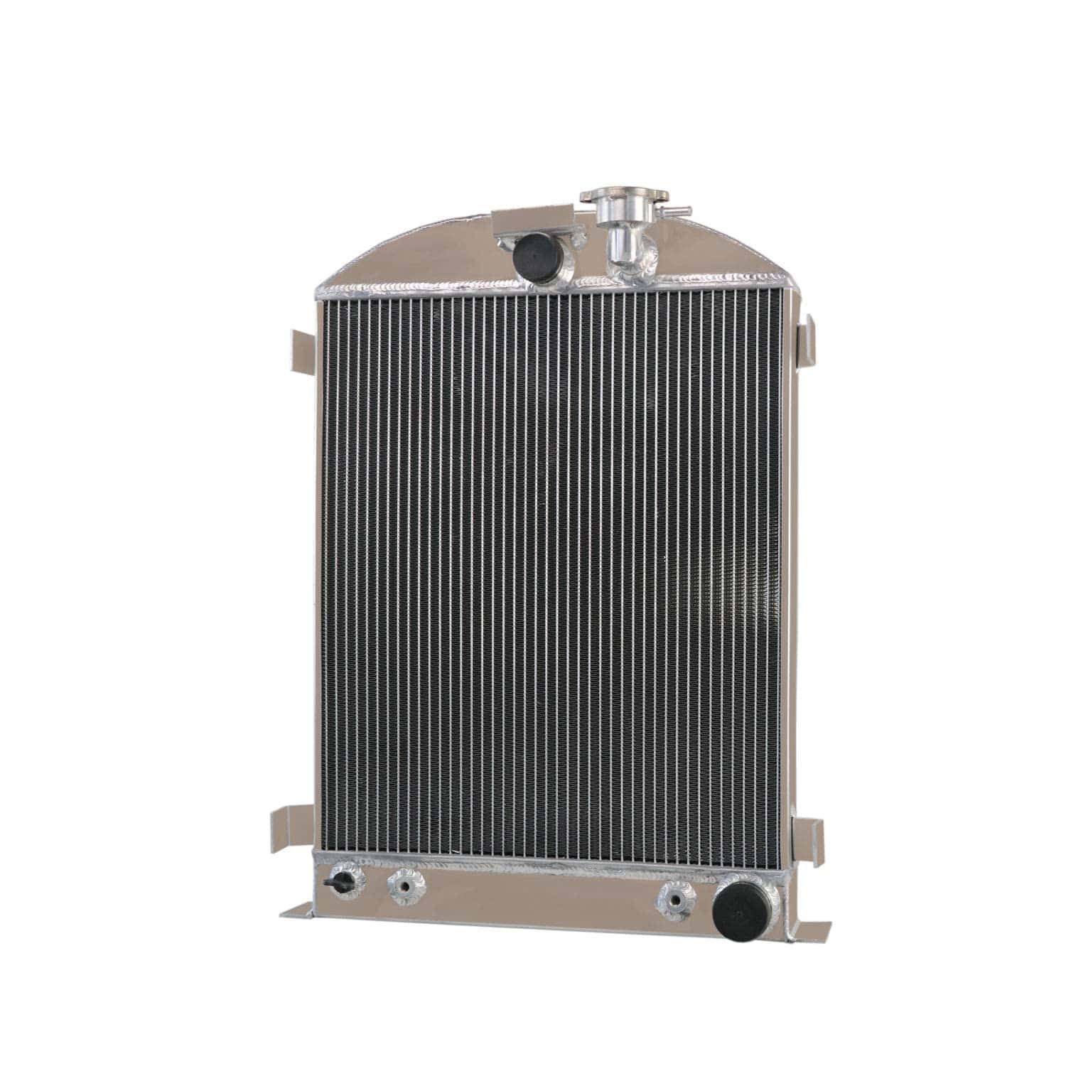 Este radiador es compatible con los Ford-Grill-Shells de 3″-Chopped con motor Chevy de 1932-1934. Esta lista incluye 1 X Radiador de aluminio de 4 filas (Incluye tapón del radiador), 1 X Tapa de aluminio, 1 X Ventilador de 16″ (Incluye kits de montaje), 1 X Kit de relé del termostato Detalles del radiador: Filas del núcleo: 4 filas Material del núcleo: Aluminio completo Material del tanque: Aluminio completo Tapa del radiador: Incluida Estilo OEM de latón Petcoke de drenaje mecanizado por CNC Cuello de llenado y tapón de alta calidad Especificación del ventilador de alto rendimiento CFM máximo del ventilador: 2000 CFM Diámetro del ventilador (in): 16.050 Grosor (in): 2.500 Número de aspas: 10 aspas RPM máximo del ventilador: 2,250 rpm Material de la hoja: Plástico Consumo de amperios: 12,70 amperios Incluye las pestañas de montaje para una instalación fácil con bridas Kit de termostato ROJO + conexión directa a la batería El cable BLANCO a la fuente de alimentación del interruptor de encendido El NEGRO va al interruptor del termo El cable AZUL va a los ventiladores ¿Por qué elegir el radiador CoolingSnow? 1. Máxima eficiencia de enfriamiento 2. Alta seguridad y rendimiento 3. Excelente material de aluminio 4. Estabilidad y durabilidad 5. Instalación fácil