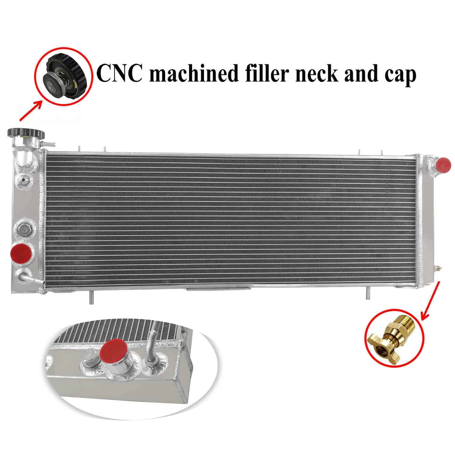 Características: 100% probado de fugas, 4 filas, radiador de flujo cruzado, probado de durabilidad, no se necesita perforar ni hacer modificaciones para la instalación