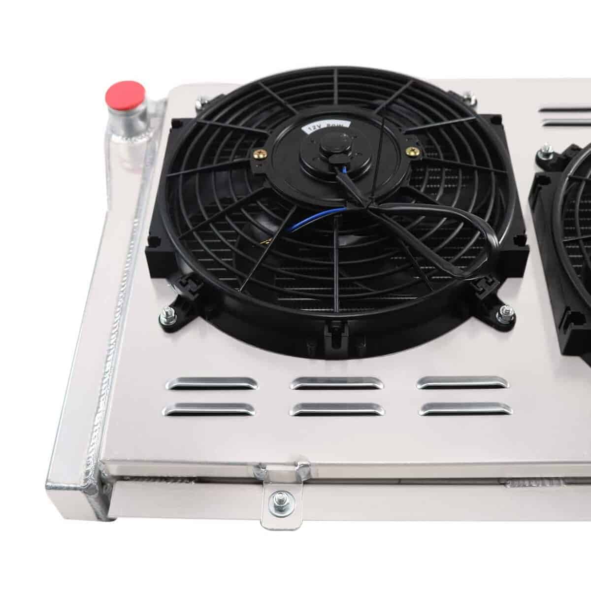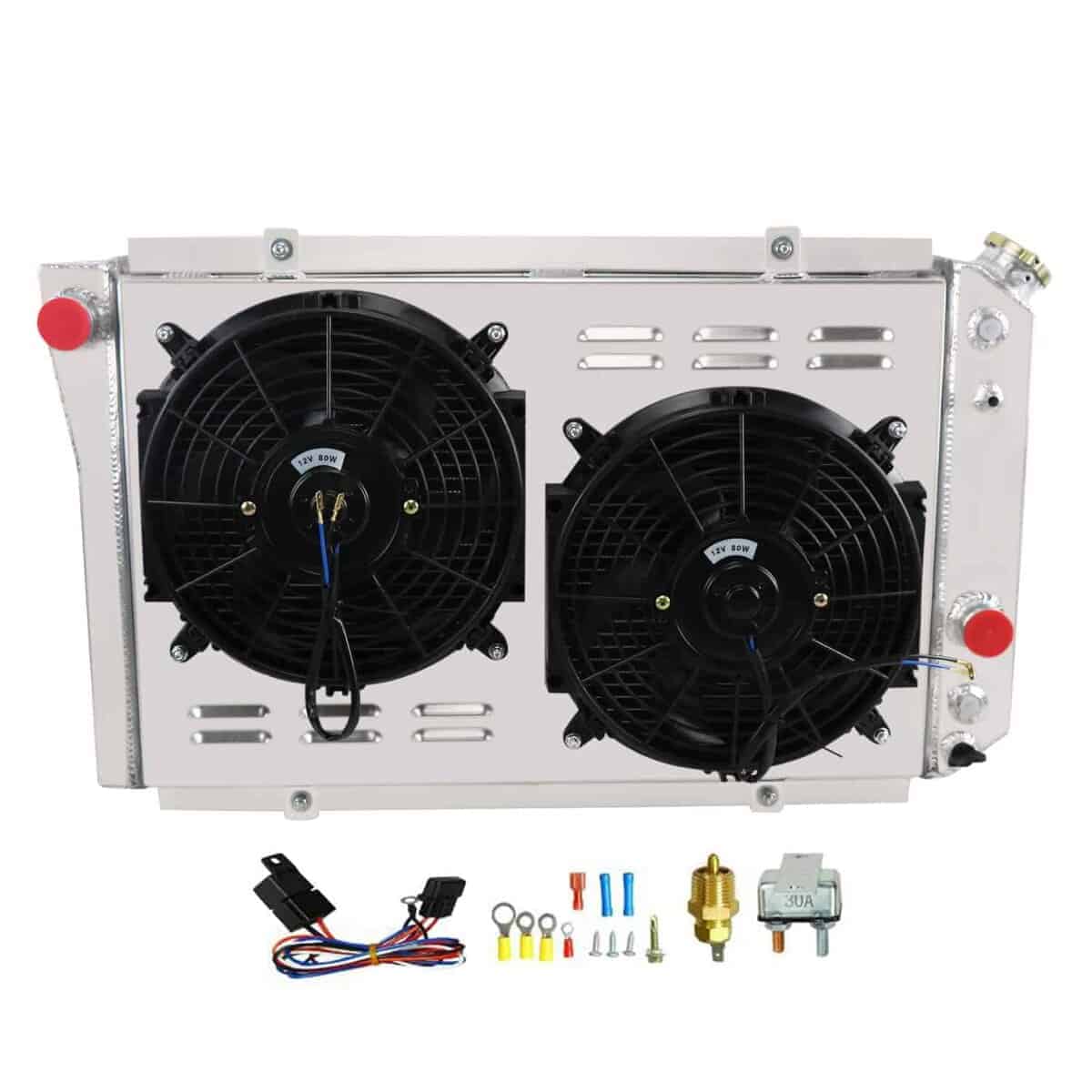 El producto incluye: 1 x Radiador de aluminio de 3 filas (incluye tapa de radiador) 1 x Carenado de aluminio 2 x Ventiladores de 10 pulgadas (incluye kits de montaje) 1 x Kit de relé de termostato Radiador Especificaciones: Tipo de conexión del enfriador de aceite de transmisión: M12x1.25 Entradas superiores: Ubicadas en el lado del conductor Salidas inferiores: Ubicadas en el lado del pasajero Material del núcleo: Aluminio completo Material del tanque: Todo aluminio Acabado de superficie: Aluminio crudo de grado aeronáutico Válvula de purga: Válvula de purga de latón estilo OEM Capucha de radiador: Cuello y tapa de llenado mecanizados por CNC Enfriador de aceite de transmisión: Incluido Tipo de flujo: Flujo cruzado Entrega: entrega local Tipo de ajuste: Repuesto directo Detalles del ventilador: CFM máximo del ventilador: 1730 cfm Diámetro del ventilador (pulgadas): 10.050 Grosor (pulgadas): 2.500 Número de aspas: 6 aspas RPM máximo del ventilador: 2,250 rpm Material de la cuchilla: Plástico Consumo de amperios: 12.70 amperios Incluye las pestañas de montaje para una instalación fácil con bridas Instrucciones del kit de relé de termostato: Activa los ventiladores eléctricos al temperatura preestablecida Temperatura de encendido/apagado de 180°F/165°F Conexión roja directamente a la batería Cable blanco a la fuente de alimentación del interruptor de encendido Cable negro va al interruptor de termostato El cable azul va a los ventiladores Números OEM/Sustituto: KKS829, SBR829, SPTCU829, Q829, 29, CC829, CU829, DPI829, MC829, AE829, EC829, 3052025, 3052026, 3053501, 3055309 Este radiador es compatible con: Conversión V8 de Chevrolet S10/S-10 Blazer 1982-2002 Chevrolet Corvette 5.7 V8 1984-1990 ¡POR FAVOR, revise cuidadosamente el TAMAÑO del núcleo/total/entrada/salida antes de realizar su pedido