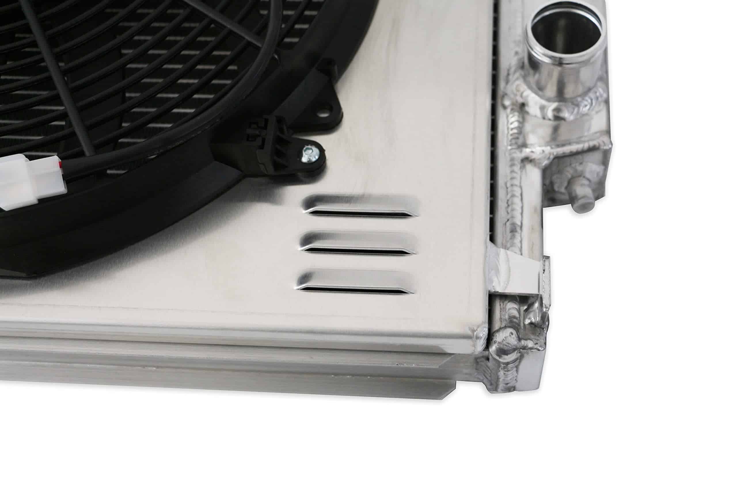 Tamaño del núcleo: 17.25″ de ancho x 21.5″ de alto. Tamaño total: 18″ de ancho x 28″ de alto. Entrada superior: 1 1/2 pulgadas Salida inferior: 1 1/2 pulgadas Tapa del radiador incluida Enfriador interno de aceite de transmisión: NO Tamaño del ventilador: 16 pulgadas CFM del ventilador: 2500 CFM Incluye nueva tapa del radiador 2 filas de tubos Superficie: Pulida COMPATIBILIDAD CON VEHÍCULOS: Para BMW E36 M3 1992-1999 Para BMW E36 325I/325IS 1992-1995 For BMW E36 320I 1992-1995 Para BMW E36 328I/S/C 1996-1999 Para BMW E36 323I/S/C 1998-2000 Para BMW E36 Z3 1998 Para BMW E36 325TD 1990-1998 Para BMW E36 325TDS 1993-1998 Códigos de motor: S52 M52 M50TU Códigos de chasis: E36 Transmisión manual (Por favor, verifique las medidas de su radiador antes de ordenar) (Nota: no hay soporte o espacio para adaptar el tanque de expansión) Por favor, retire la espuma EPE antes de la instalación.