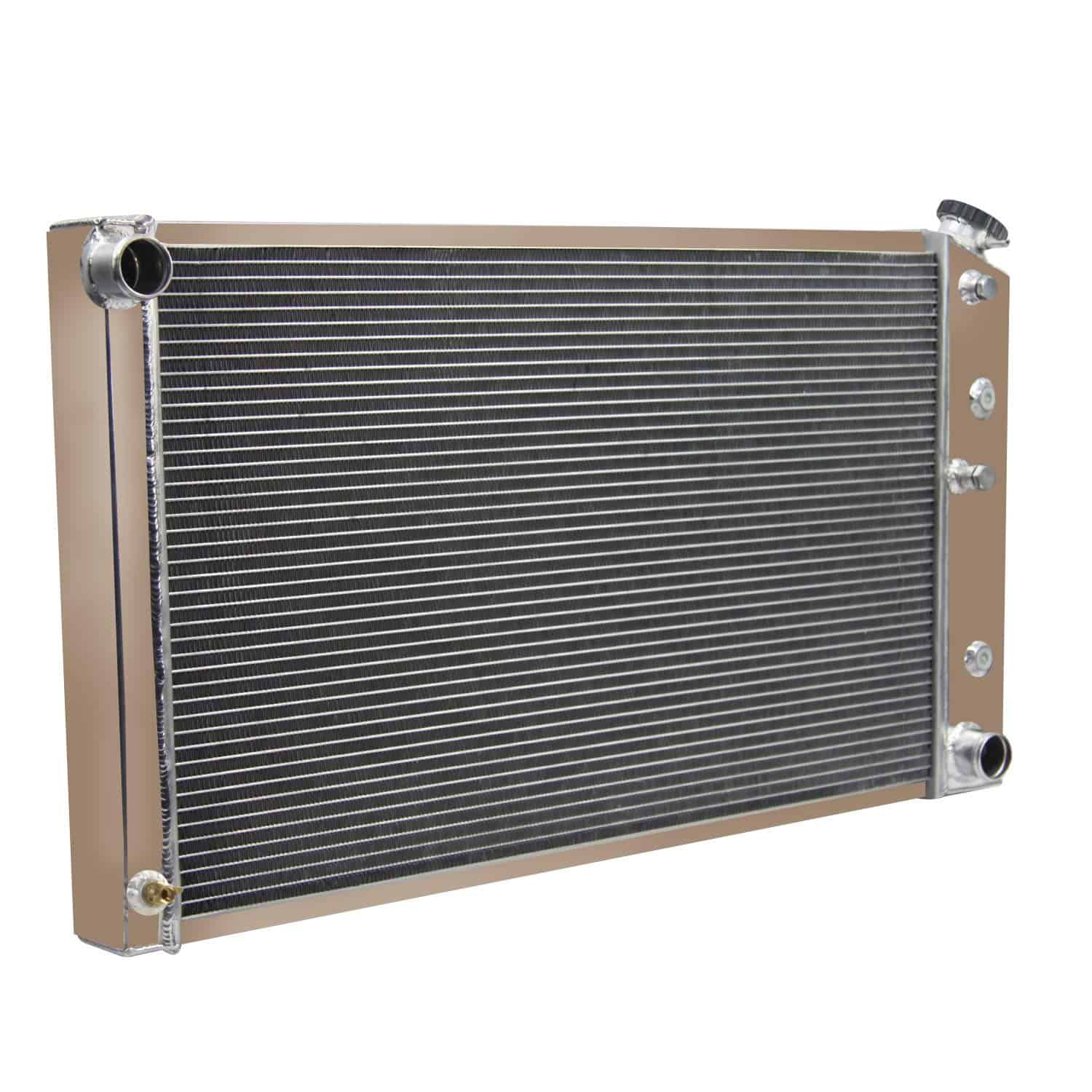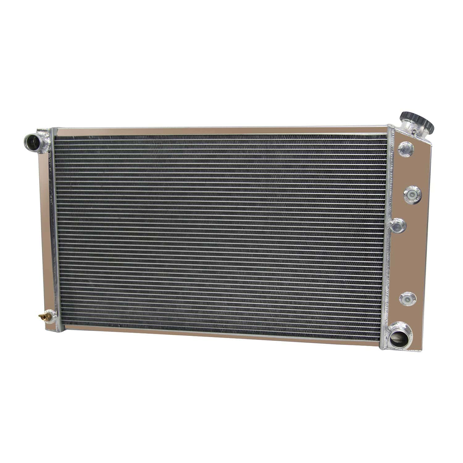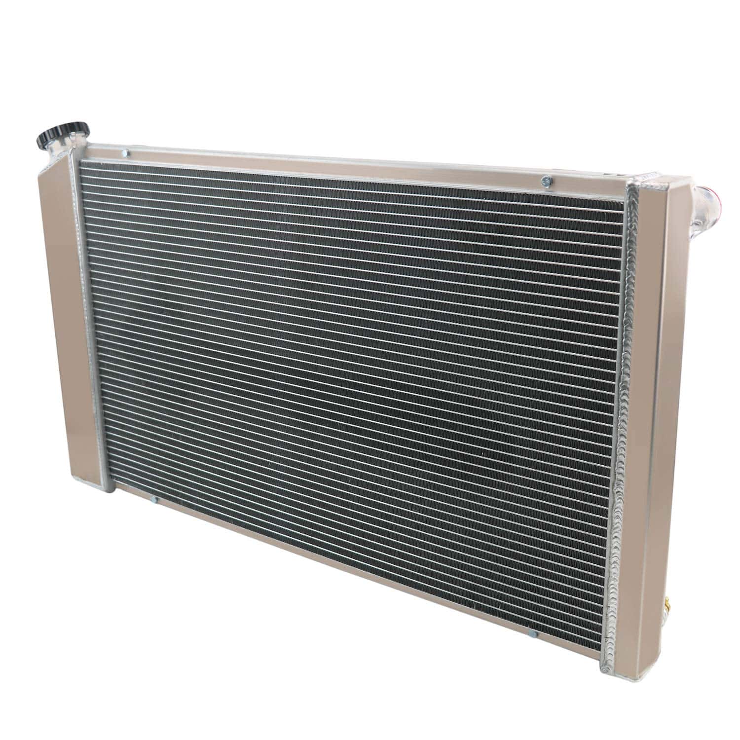 El Radiador de Aluminio ECMRAD se produce y diseña para proporcionar una máxima eficiencia de enfriamiento para prevenir fallas en el enfriamiento del motor. Está hecho de aluminio completo, liviano y de alta transferencia de calor que cuenta con un diseño de tubo y aleta que aumenta drásticamente la superficie que permite que el calor se disipe de manera más eficiente. Tiene una durabilidad mayor que el radiador de tanque final de plástico de fábrica, y un enfriamiento de motor mucho mejorado. Lo más importante es que tiene una capacidad mucho mayor para el refrigerante que los originales, lo que significa que su sistema de enfriamiento será más eficiente y más resistente a las fluctuaciones de temperatura en aplicaciones de carreras. Este Radiador de Aluminio es Compatible con: Para Chevy Caprice 1971-1990. Para Chevy Chevelle 1968-1973. Para COCHES GM CHEVY 28 WIDE CORE. Para 1973-77 Camión Chevy (Núcleo de 28 pulgadas de ancho x 17 pulgadas de alto). Para Coches Chevy Caprice (se adapta al núcleo de 28 pulgadas de ancho). Para Chevy El Camino 68-77. Para Chevy Chevelle Malibu 68-77. Para Chevy Biscayne 1971-1972. Para Buick Riviera 67-69. Para Olds Cutlass 66-77. Para COCHES GM OLDSMOBILE CADILLAC 28 WIDE CORE. Para K5 Blazer / Blazer 1973-1980. Para Furgonetas G & P-Series Chevy / GMC 72-80. Para Chevy Monte Carlo 70-77. Para Blazer / Jimmy 73-80. Para GM 28 CORE 68-85. Para Buick Skylark 67-72. Detalles del Tamaño del Radiador: Tamaño del Núcleo: 17 Alto x 28 1/4 Ancho x 2 1/2 Grosor Tamaño Total: 18 5/8 Alto x 33 Ancho x 4.13 Grosor del Tanque Ubicaciones y Tamaños de Mangueras: En Conductor- 1-1/2 / Fuera Pasajero- 1-1/2 Trans Cooler: Incluido- 1/2 20. ROSCA RECTA G1 / 4 Acabado Superficial: Tanque de aluminio de grado 5057 de avión. Petcock Drain: Drenaje de grifos de latón estilo OEM. Tapa del Radiador: Cuello y tapa ranurados CNC mecanizados. Paquete Incluido: 1 X Radiador de Aluminio de 4 Filas con Tapa del Radiador en una Caja de Cartón