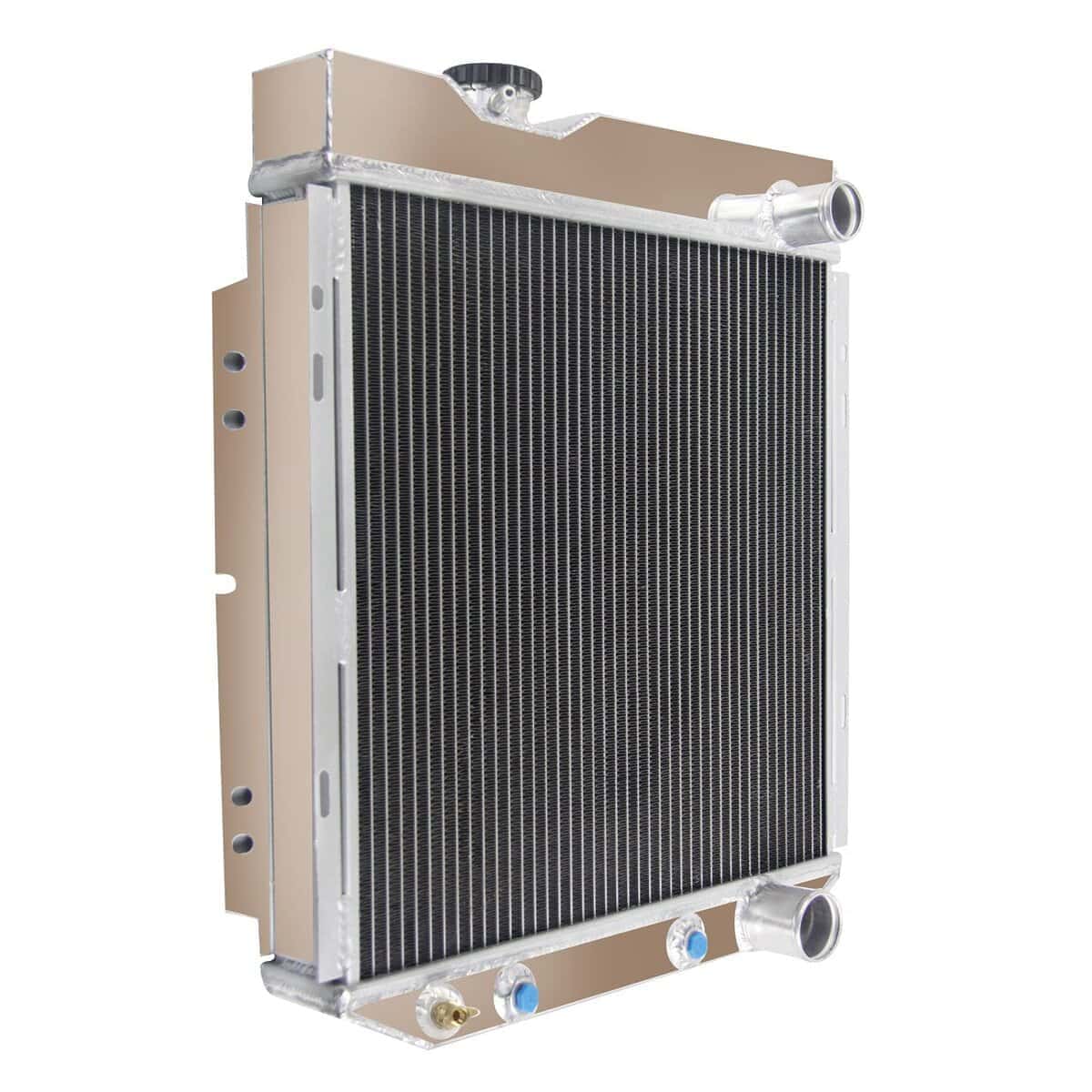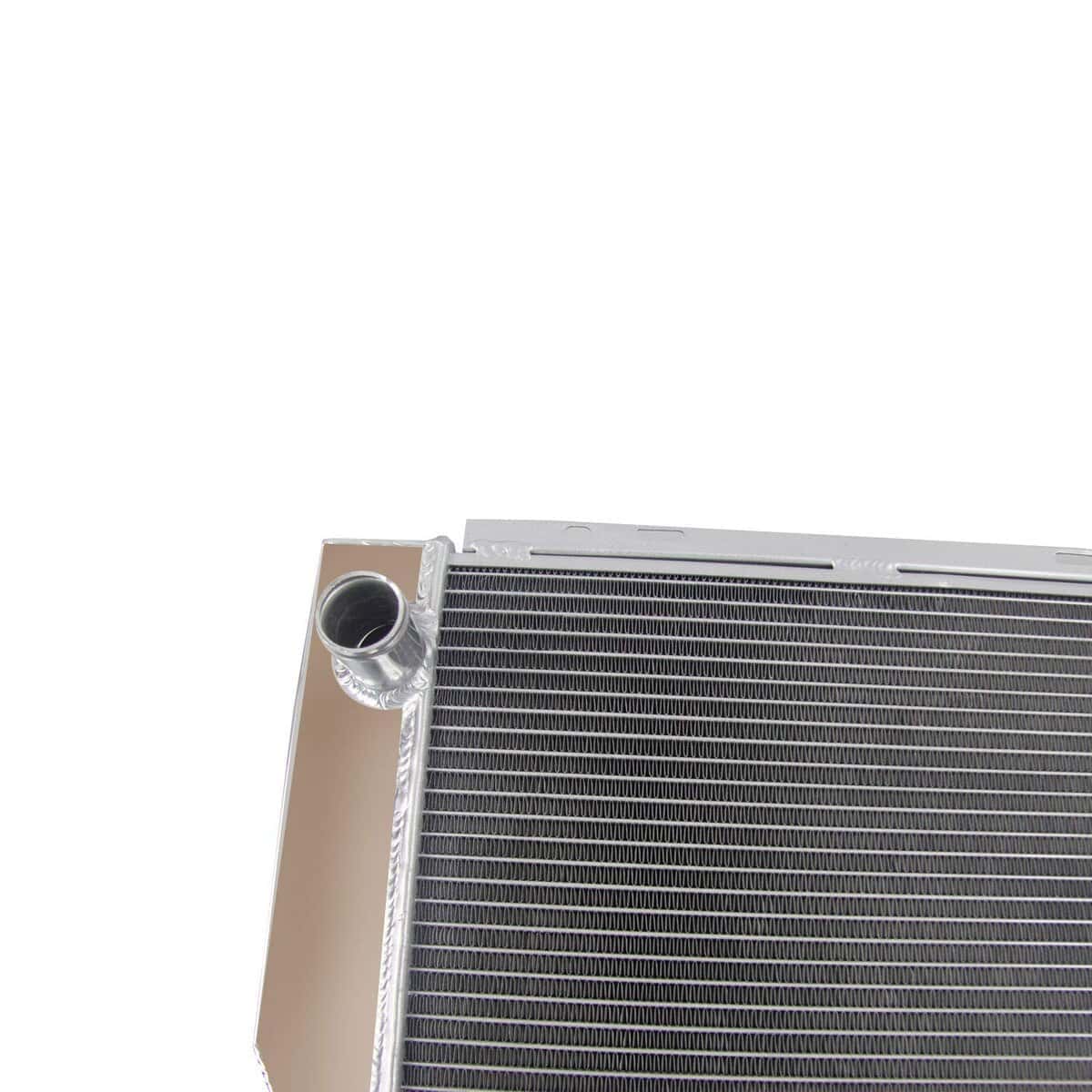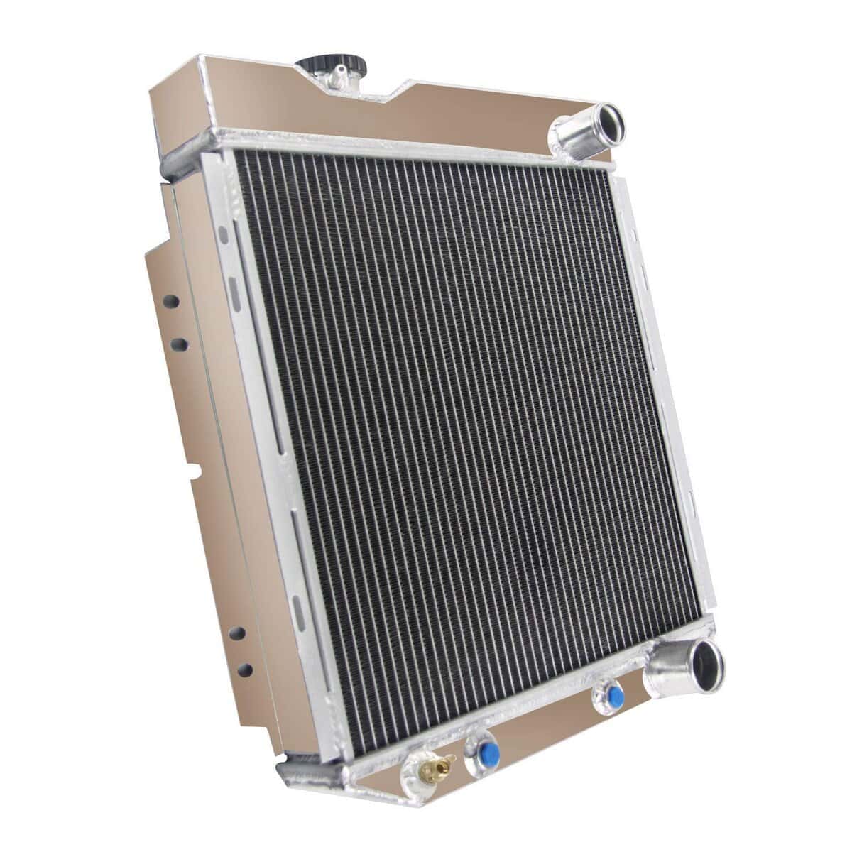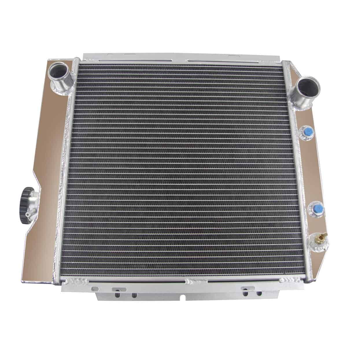 El Radiador de Aluminio ECMRAD está producido y diseñado para proporcionar una máxima eficiencia de enfriamiento para prevenir el fallo del enfriamiento del motor. Está hecho completamente de aluminio ligero y de alta transferencia de calor, con diseño de tubos y aletas que aumenta dramáticamente la superficie que permite disipar el calor de manera más eficiente. Tiene una mayor durabilidad que el radiador de tanque final de plástico de fábrica y mejora significativamente el enfriamiento del motor. Lo más importante es que tiene una capacidad mucho mayor para el refrigerante que los originales, lo que significa que su sistema de enfriamiento será más eficiente y más resistente a las fluctuaciones de temperatura en aplicaciones de carreras. Este Radiador de Aluminio es compatible con: Ford Mustang Falcon Mercury Comet V8 4.3L 4.7L 1963-1966, para Ford Mustang/63-65 Falcon V8 Motor Auto/Manual. Detalles del Tamaño del Radiador: Tamaño del núcleo: 16.85 «x 16.5» x 2 «Tamaño total: 19.5» x 21.75 «x 4.25». Acabado superficial: Tanque y núcleo de aluminio de grado aeronáutico 5057. Tapa del radiador: Cuello y tapa de llenado mecanizados CNC. Llave de paso de drenaje: Llave de paso de latón estilo OEM. Detalles del Enfriador de Transmisión: 1/8-27 NPT. Aluminio de grado aeronáutico 5057 y acabado de aluminio crudo. Paquete Incluido: 1 X Radiador de Aluminio de 3 Filas con Tapa del Radiador en una Caja de Cartón.
