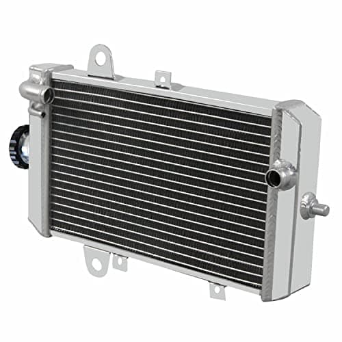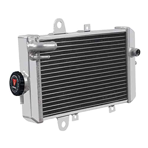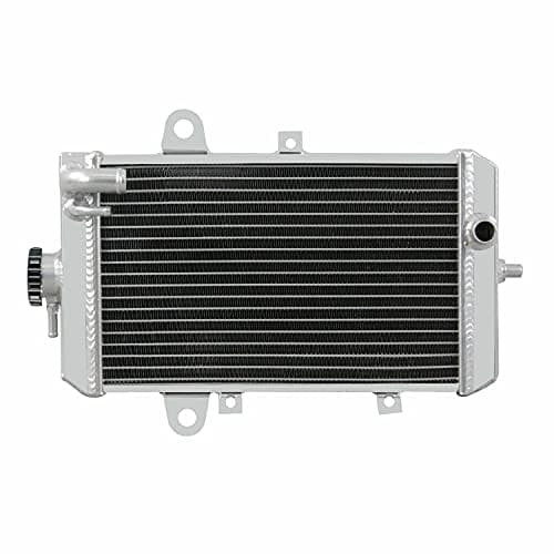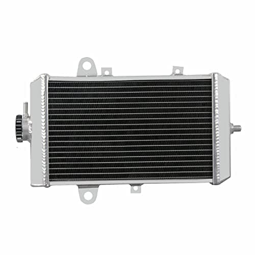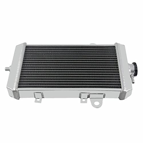 Especificaciones del Radiador: Condición: 100% nuevo Material: Tanque de aluminio de grado T-5052 y núcleo de aluminio de avión Fila: 1 fila Tamaño del núcleo: 7.4» H x 11.8» W x 1.26» de grosor Tamaño total: 11»H x 16.3»W x 3.1» T Entrada superior: 0.79 pulgadas ubicada en el lado del conductor Salida inferior: 0.79 pulgadas ubicada en el lado del pasajero Este radiador es compatible con: 2013-2018 Yamaha Raptor 700 / Raptor 700R Para confirmar que esta parte se ajusta a su vehículo, ingrese el Año, Marca, Modelo, Recorte y Motor de su vehículo en la Tabla de Compatibilidad. Características: Nuestro Radiador de Aluminio AA5052 está diseñado para proporcionar la máxima eficiencia de enfriamiento para prevenir fallas prematuras del motor. Su aluminio ligero y con alta transferencia de calor presenta un diseño de tubo y aleta que aumenta drásticamente la superficie para permitir que el calor se disipe de manera más eficiente. Este Radiador de Aluminio AA5052 es al menos un 30%-45% más eficiente que los radiadores de serie. Lo más importante es que tiene una capacidad mucho mayor para el refrigerante que los radiadores de serie, lo que significa que su sistema de enfriamiento será más eficiente y será más resistente a las fluctuaciones de temperatura en aplicaciones de competición.