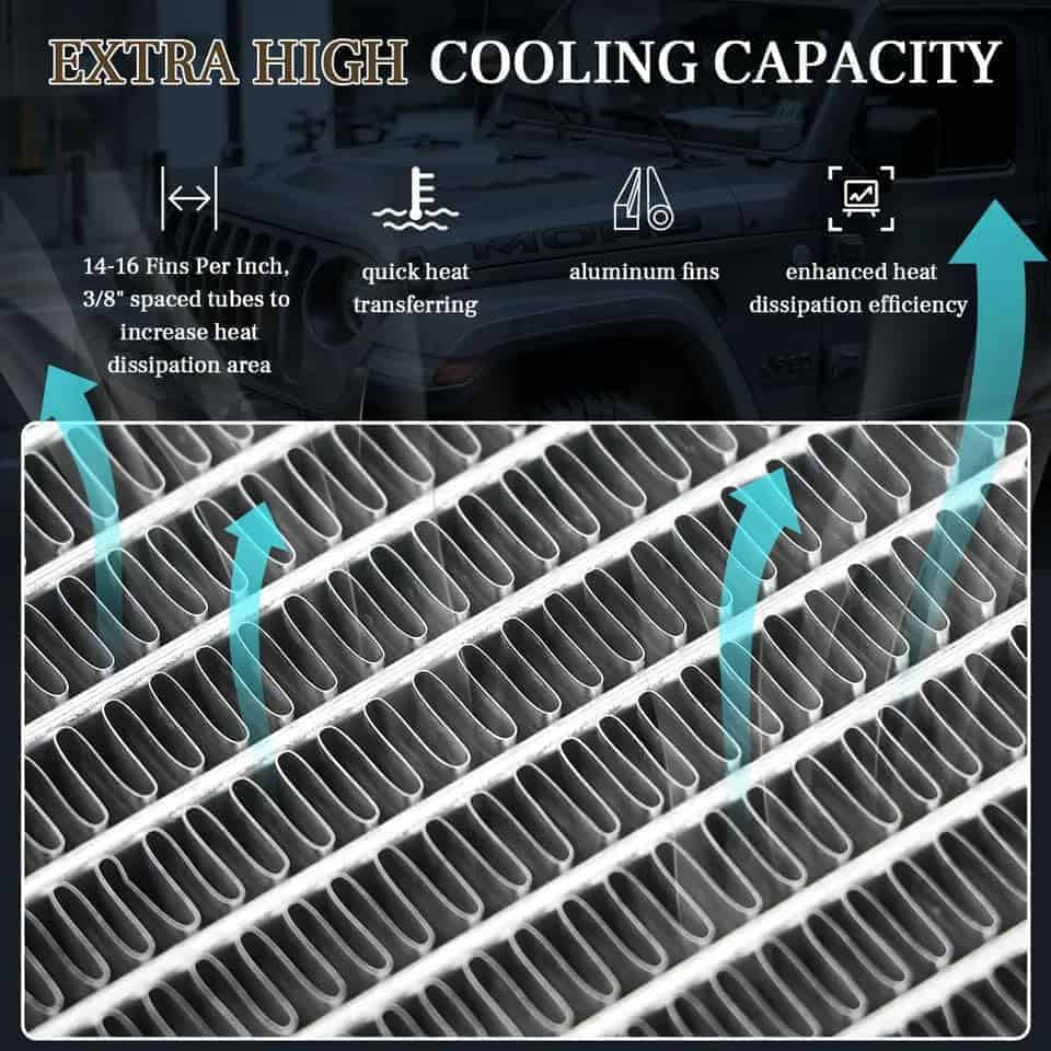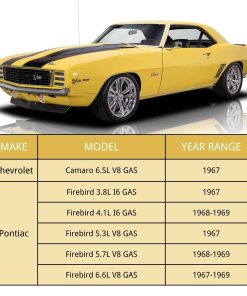 Compatibilidad con Vehículos: PARA 67-69 Chevy BB Camaro/Firebird/Trams Am de 1968 Para 67 68 69 Camaro Big Block de 23″ de ancho Para 67 68 69 Camaro/Firebird Para Pontiac Firebird de Big Block Para 67 68 69 Pontiac Firebird / Trans Am Para 67 68 69 CHEVY CAMARO BIG BLOCK / FIREBIRD TRANS AM Para 1967-69 CHEVY CAMARO/FIREBIRD T/A 5.7L V8 Transmisión: Automática y Manual. Número de parte de intercambio: 370 0370 DPI370 CC370 CU370 R0370 R370-ACP R370-LKQ Otro número de parte: 040876433700 3010101 3010180 3010181 3010183 3014093 Número de parte OEM: 3014094 3014095 3014096 675-01080B Esta lista incluye: 1 X Radiador de aluminio de 3 filas (Incluye tapa del radiador) 1 X Shroud de aluminio 1 X Ventiladores de 16″ (Incluye kits de montaje) 1 X Kit de Relé del Termostato Tamaño del radiador: Condición: Nuevo Material: Tanque y núcleo de aluminio de grado aeronáutico 5057 Especificación de Carreras de Alto Rendimiento Diseño de Carreras de Núcleo de 3 Filas de Tubos Dimensiones del Núcleo: 17″ de alto x 23″ de ancho Dimensiones Totales: 19-1/4″ de alto (parte superior de la tapa) x 30-1/4″ de ancho (Incluye Soportes) ENTRADA superior: 1-1/2″ ubicada en el lado del CONDUCTOR. SALIDA inferior: 1-3/4″ ubicada en el lado del PASAJERO. Sistema de Montaje: Soporte Enfriador de Transmisión: Incluido Se ajusta solo al núcleo de 23″ Drenaje del Pitorro: Pitorro de drenaje de estilo OEM de latón Tapa del radiador: Cuello y tapa de llenado mecanizados por CNC