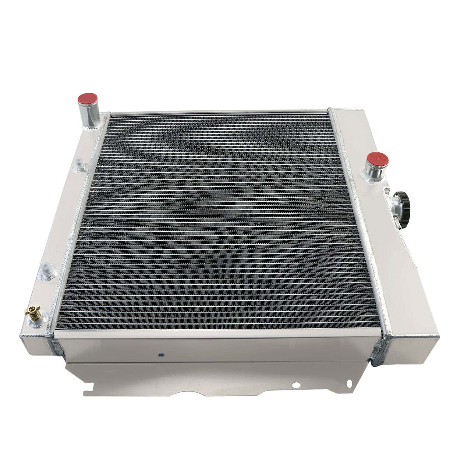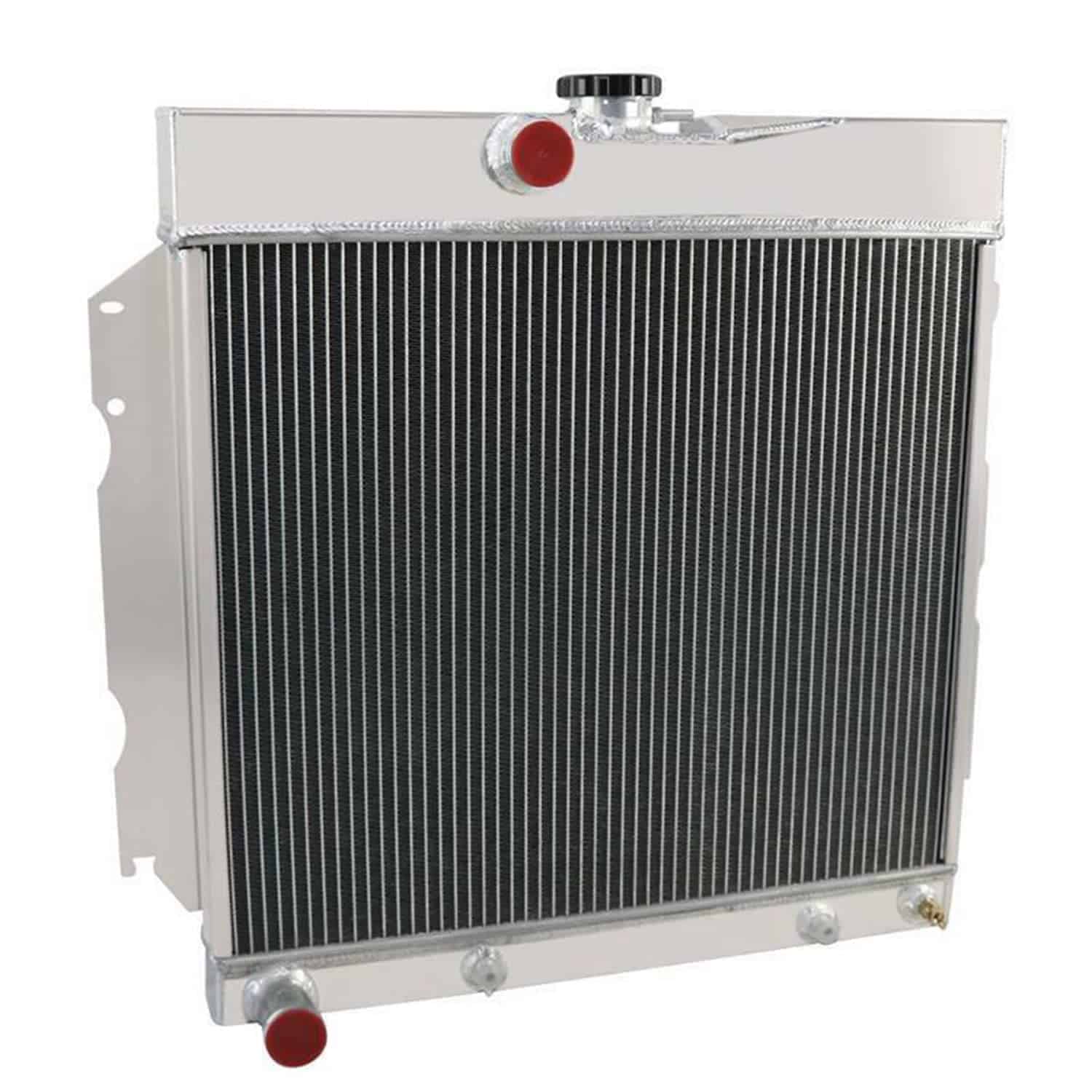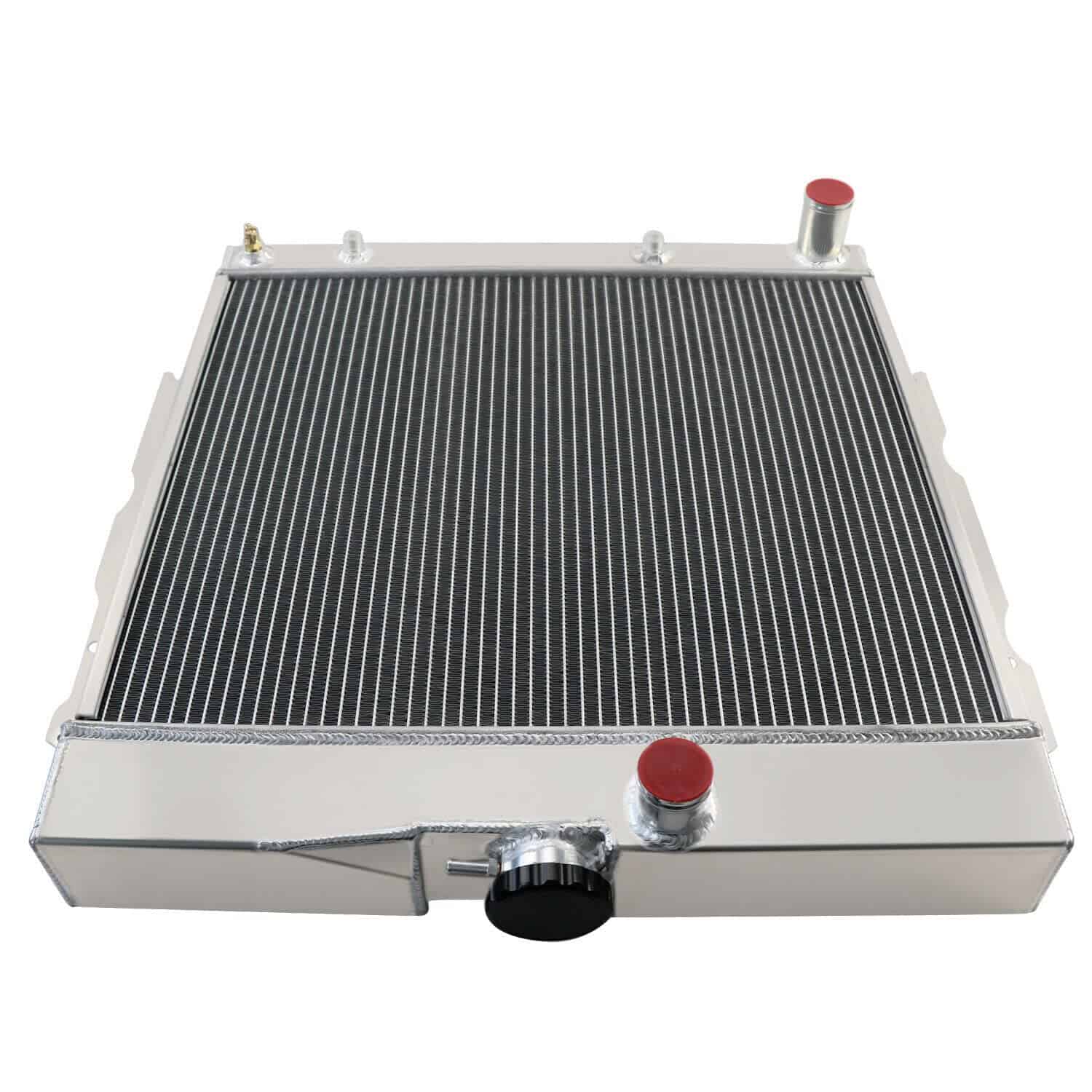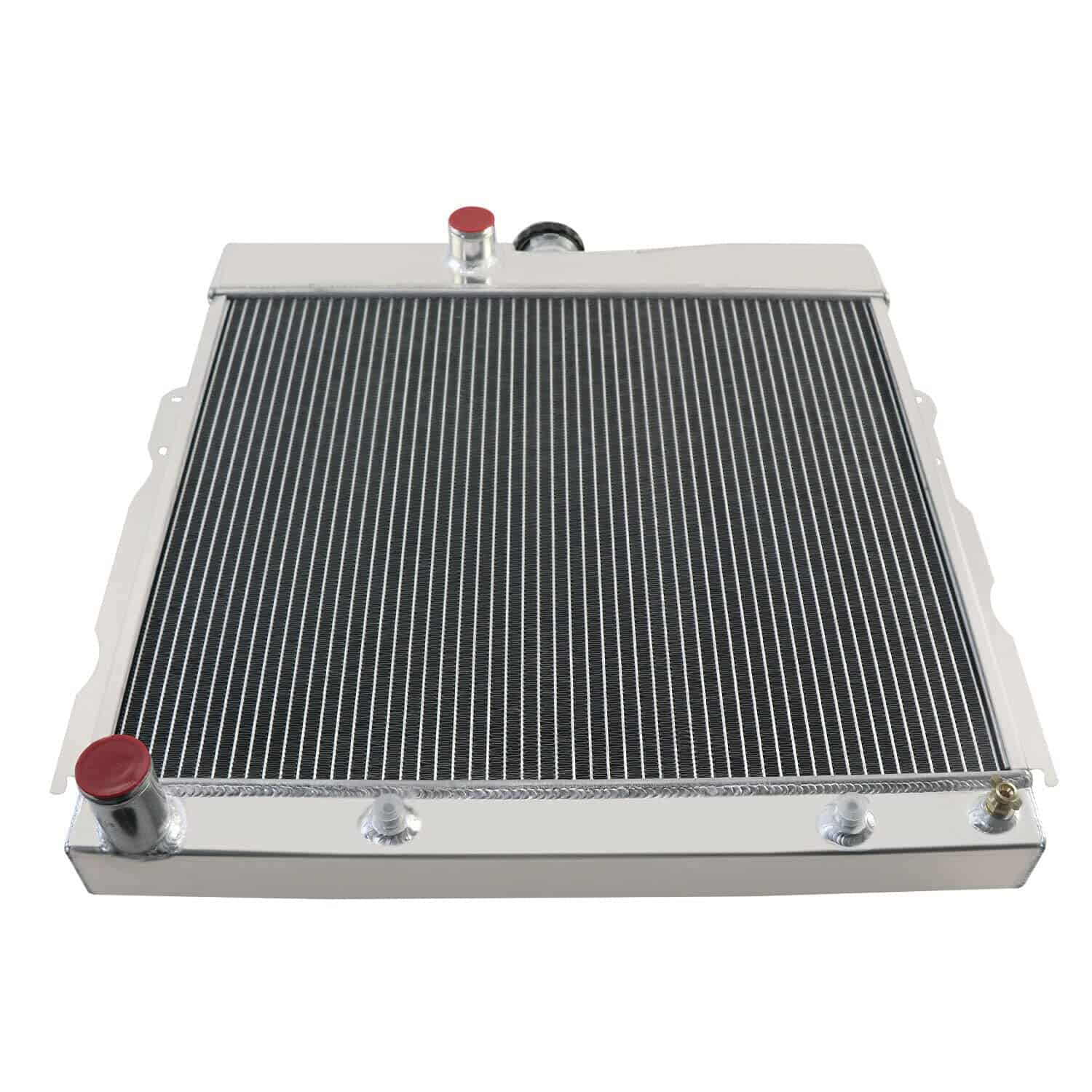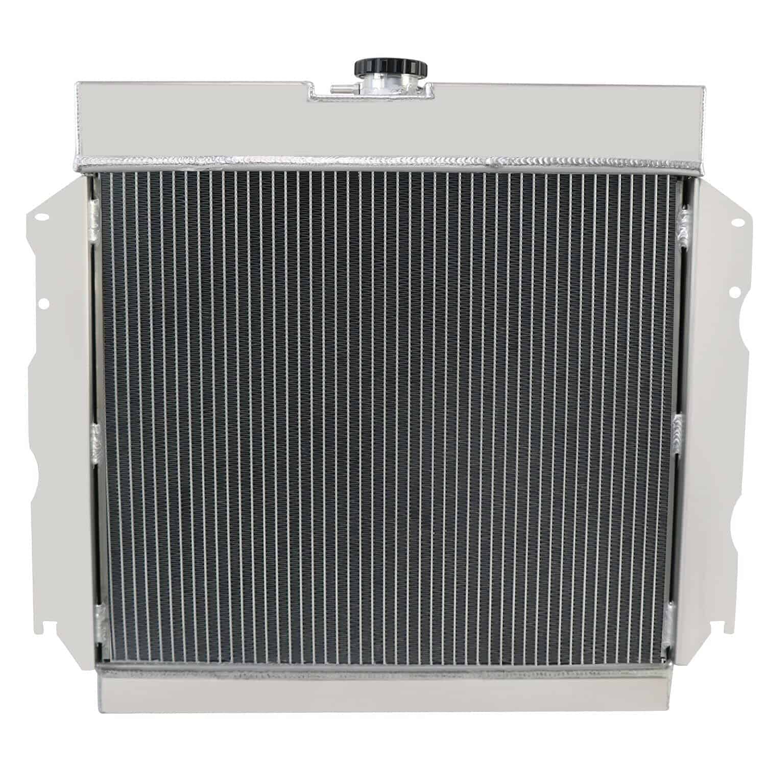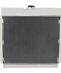 Radiador de aluminio de 4 filas de alto rendimiento para modelos específicos de Dodge y Plymouth. Compatible con los modelos 1965-1969 Dodge Charger, Coronet, Polara, W200, W300 Series con motores de 4.5L, 5.2L, 5.9L, 6.3L, 7.0L, y 7.2L V8. También es compatible con los modelos 1964-1969 Plymouth Barracuda, Belvedere, Fury, Satellite, Valiant. Este radiador tiene un tamaño de núcleo y total específico para una fácil instalación. Cuenta con un enfriador de aceite de transmisión integrado y está construido con aluminio de alta calidad para una mayor durabilidad y rendimiento en condiciones de alto estrés.
