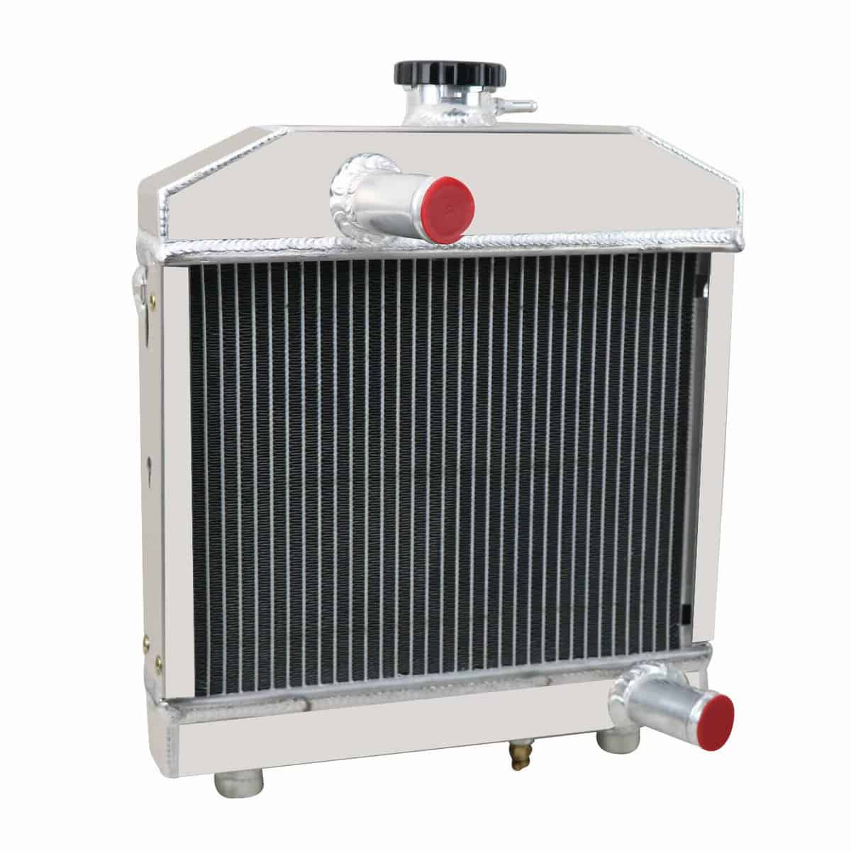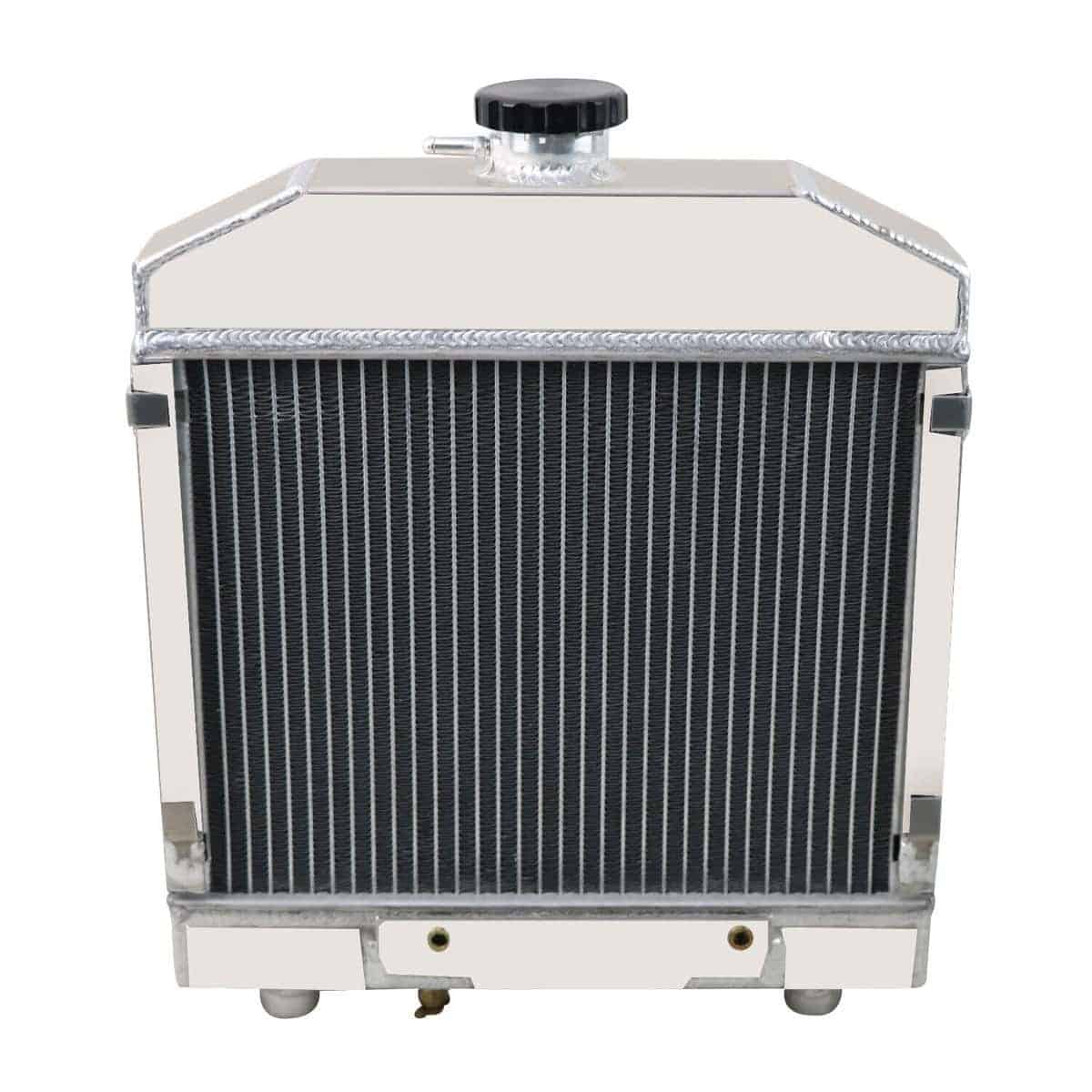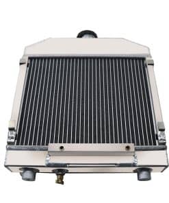 3.14-16 aletas de enfriamiento por pulgada, lo que le brinda aproximadamente 1500 aletas de enfriamiento más que otros radiadores de aluminio. El núcleo del radiador de aluminio AA5052 puede ser hecho más eficiente cambiando el espaciado de los tubos y la cantidad de aletas. Si los tubos están colocados más cerca y las aletas están embaladas más apretadas se crea un núcleo más denso que desprende mucho más calor. Un núcleo de alta eficiencia puede tener tubos en centros de 3/8″ y contar con 14 a 16 FPI, eso puede no parecer gran cosa pero aumenta en gran medida el área de superficie. Combinado con todas las aletas adicionales entre los tubos esto proporciona aproximadamente un 30% a 45% mejor enfriamiento que el radiador OEM tenía.
