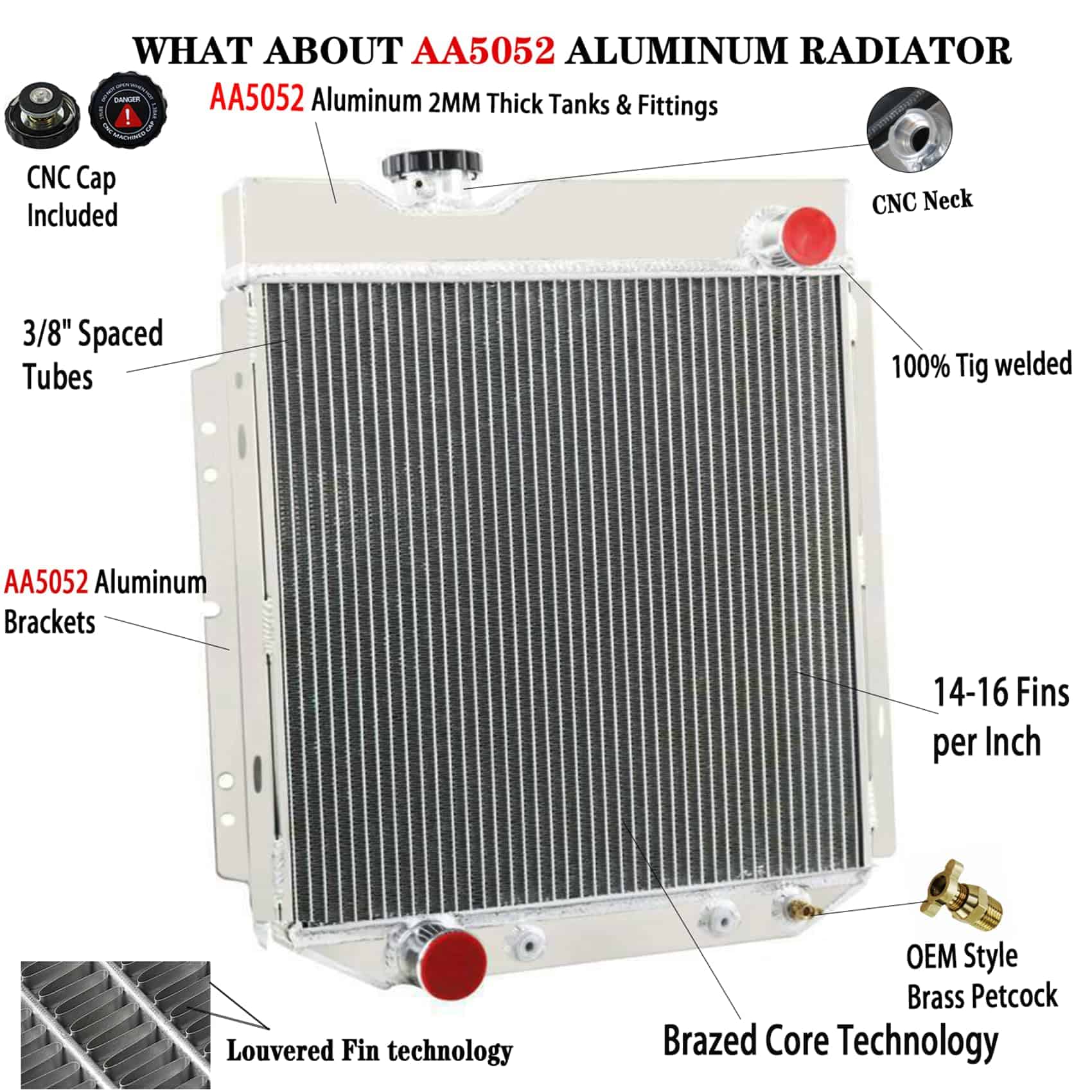 Este Radiador de Aluminio T-5052 es al menos un 30%-45% más eficiente que los radiadores de fábrica.