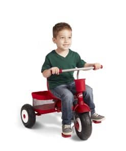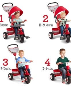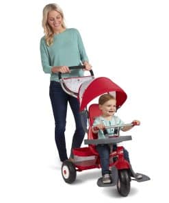 El Ultimate All-Terrain Stroll ‘N Trike es el triciclo definitivo que crece con tu hijo. Hay 4 formas de andar para adaptarse a las edades de 9 meses a 5 años: se convierte fácilmente de triciclo para bebés a triciclo de empuje, triciclo de aprendizaje y triciclo clásico. Las llantas todo terreno ofrecen un paseo suave en cualquier terreno. Este triciclo también ofrece características de seguridad esenciales para los más jóvenes, incluido un reposapiés extraíble, bandeja de refrigerios de seguridad con portavasos y arnés de 3 puntos. Con una canasta de almacenamiento trasera extra grande y bolsa para padres, todos pueden llevar lo esencial consigo. ¡Quita el manubrio de empuje ajustable en altura, el toldo y el cojín del asiento y tu hijo estará listo para andar por su cuenta. Capacidad máxima de peso 49 libras. Para edades de 9 meses a 5 años.