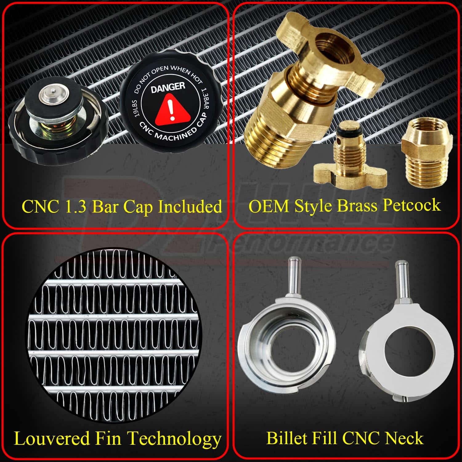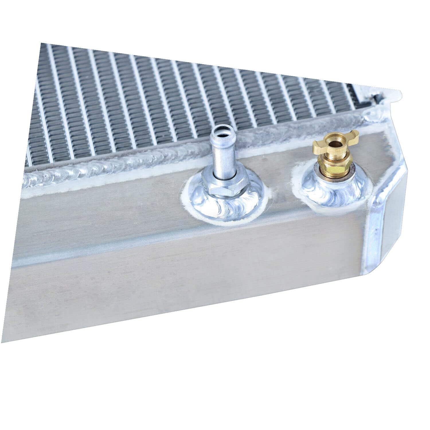 Este Radiador de Aluminio está diseñado para proporcionar la máxima eficiencia de enfriamiento para prevenir fallos prematuros del motor. Su ligero y de alta transferencia de aluminio para el calor cuenta con un diseño de tubos y aletas que aumenta drásticamente la superficie para que el calor se disipe de forma más eficiente. Este Radiador de Aluminio es al menos un 35%-45% más eficiente que los radiadores de serie. Lo más importante es que tiene una capacidad mucho mayor para el líquido refrigerante que los de serie, lo que significa que su sistema de enfriamiento será más eficiente y más resistente a las subidas de temperatura en aplicaciones de carreras.