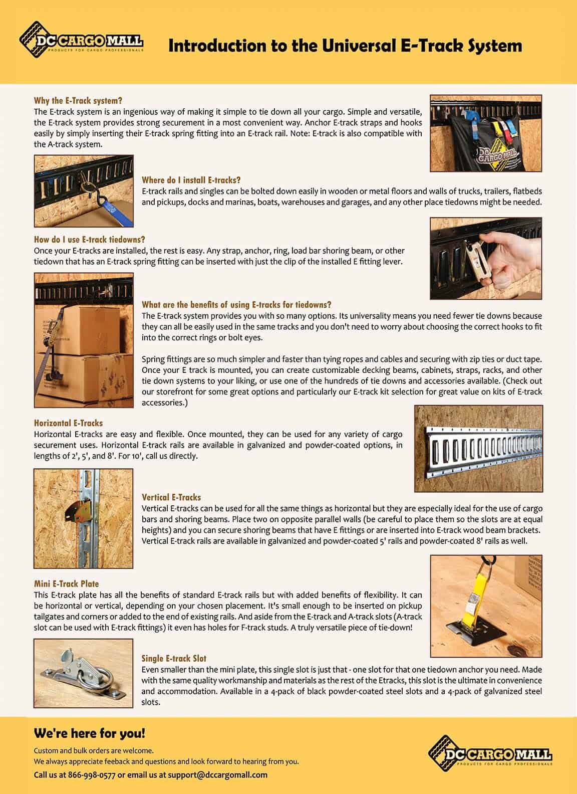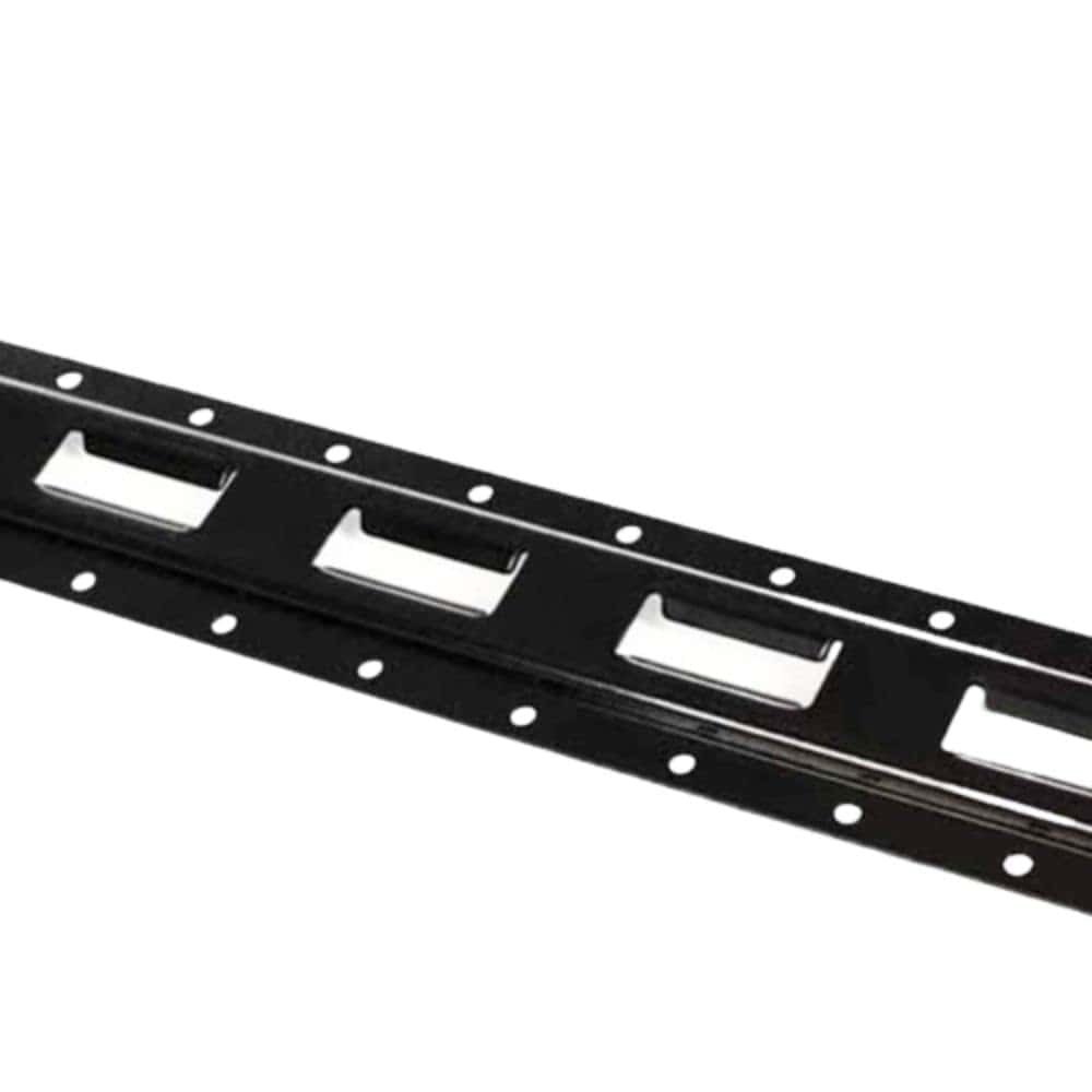 2 RAÍLES DE AMARRE E-TRACK E-Track es lo último en sistemas de amarre de carga que te permitirá tener el control de tu transporte de mercancías mediante un sistema de amarre fuerte que funciona en cualquier lugar, con cientos de opciones para asegurar las necesidades de cada carga. ¡Además es increíblemente fácil de usar! Los raíles Etrack se pueden montar en el suelo de un camión de cama plana o remolque utilitario para un amarre óptimo de ATV, autos y motocicletas. También se pueden colocar en la pared para asegurar fácilmente equipos pequeños, herramientas eléctricas, barras de carga para carga, madera, pertenencias personales, paquetes y otros tipos de carga. Los E-tracks se pueden usar solos o en pares para asegurar cargas grandes. Raíl Vertical E-Track de 8 pies, Acero de calibre 12 con recubrimiento en polvo Consulta las imágenes para obtener un boceto mecánico detallado que muestra todas las medidas que necesitas para la instalación. Este raíl vertical de remolque de 8 pies es el anclaje perfecto para tus necesidades de amarre de carga en camionetas pickup, camiones de caja cerrada, refrigerados, grandes remolques cerrados, furgonetas de carga pequeñas, remolques de cama plana y utilitarios/motocicletas, almacenes, garajes y otros espacios de trabajo. Hecho de acero duradero de calibre 12 que puede resistir los elementos al aire libre y el manejo brusco en interiores, con recubrimiento en pintura negra para un acabado extra duradero que no se astillará ni rayará. Las ranuras colocadas verticalmente son de 1″ x 2,5″, espaciadas a 1″ de distancia. Los agujeros de montaje de 1/4″ están en ambos extremos, separados por 2″. Instalación para Raíles de Amarre E-Track ¡Este Etrack vertical de 8 pies es muy fácil de instalar! Elige tornillos o pernos según el grosor de los pisos o paredes de tu remolque, así como si usarás espárragos para remolques o placas de respaldo. Los sujetadores de instalación no están incluidos.