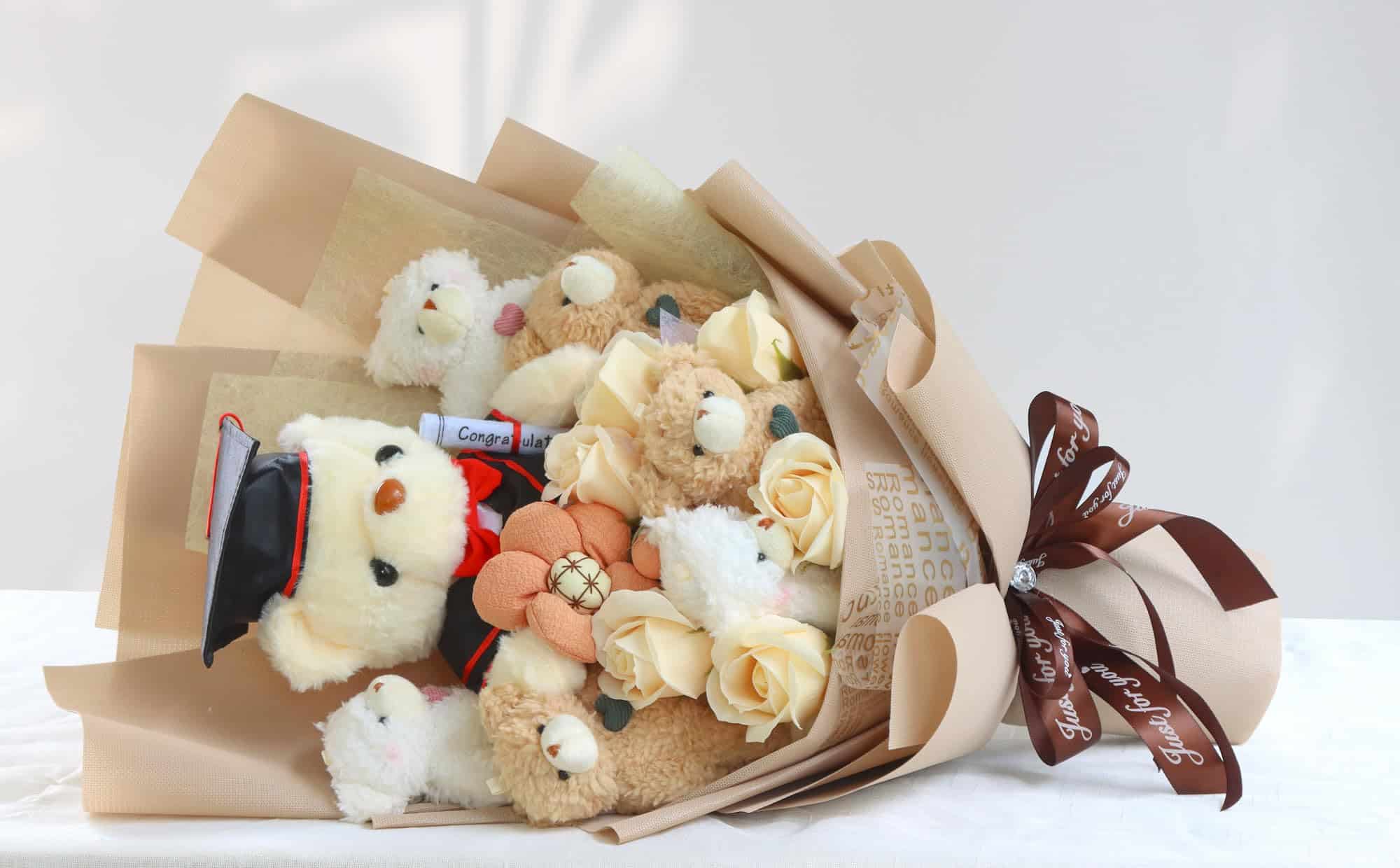 Ramo de Osito Adorable – Ramo de Peluche con Lindas Flores