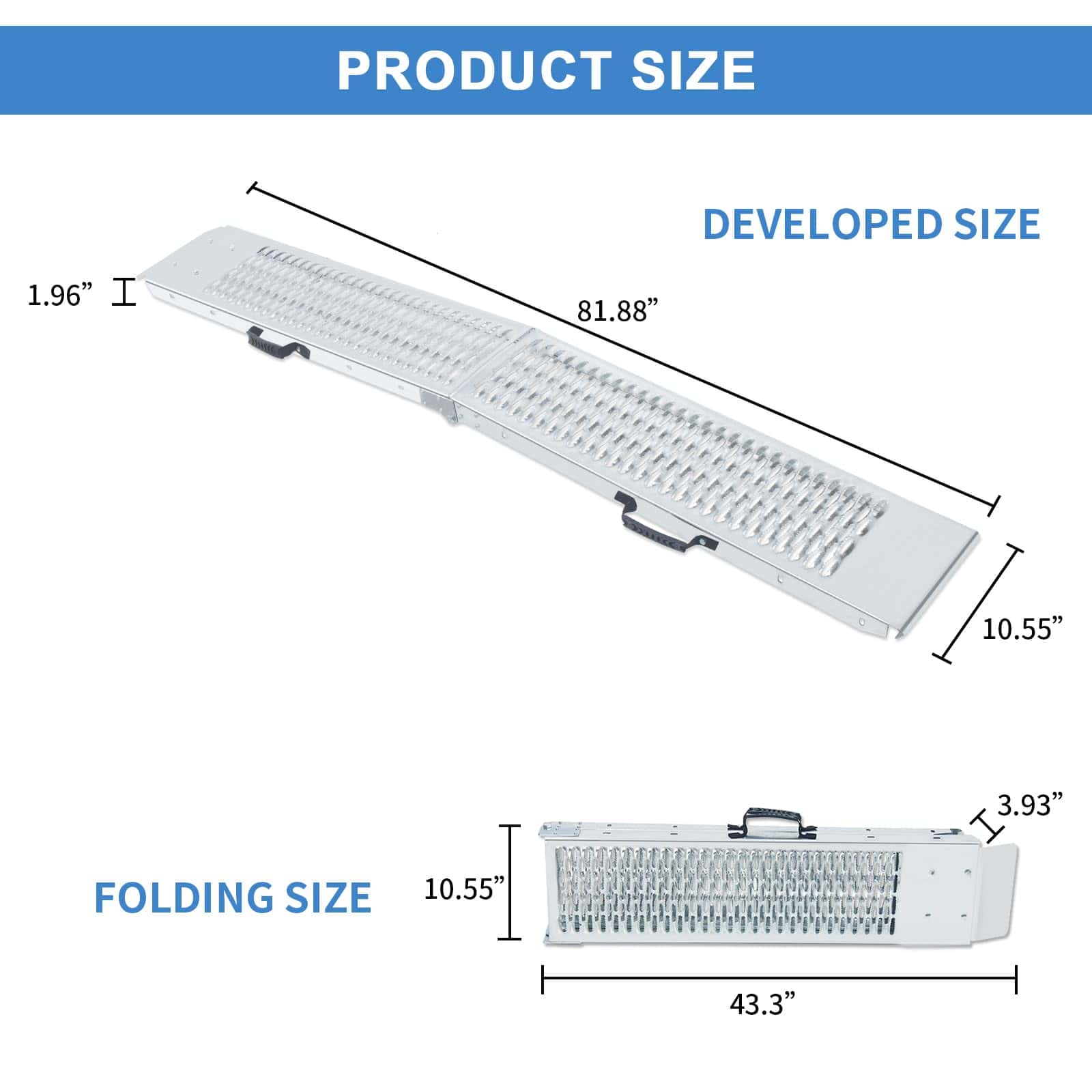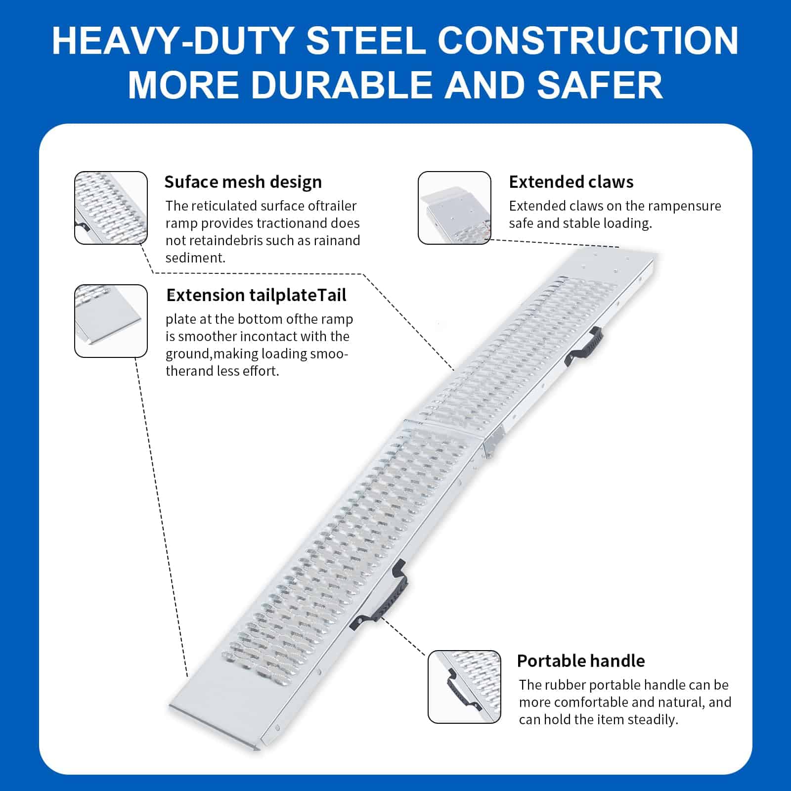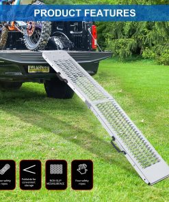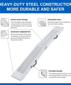 Transforme sus tareas de carga y descarga con esta rampa de carga de acero resistente diseñada para una durabilidad y confiabilidad superiores. La robusta construcción de acero proporciona una resistencia excepcional para mover de manera segura equipos, vehículos y maquinaria pesada. Perfecta tanto para uso profesional como personal, esta rampa de carga cuenta con un diseño ingeniosamente diseñado que garantiza estabilidad durante las operaciones de carga. La construcción resistente ayuda a distribuir el peso de manera uniforme en la superficie de la rampa, mientras que el patrón de superficie antideslizante mejora la tracción y la seguridad en diversas condiciones climáticas. Ya sea que esté cargando equipos de jardinería, ATVs, motocicletas u otro equipo pesado, esta rampa facilita el proceso de manera más suave y eficiente. Su diseño portátil permite almacenamiento conveniente cuando no está en uso, manteniendo la integridad estructural necesaria para aplicaciones exigentes. Ahorre tiempo y esfuerzo mientras protege su valioso equipo con esta solución de carga esencial.