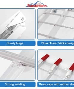Ruedamann 89» Rampa de Camión de Aluminio/Rampas para ATV/Rampa de Motocicleta/Rampas de Carga para Segadora/Camionetas/Sopladora de Nieve, Capacidad de 750 lb Diseño Protector 1. El diseño de punta suave reduce la abrasión. Hay 3 tapas en la parte inferior de la rampa de carga, lo que evitará que se resbale y la hará mucho más segura y estable durante la carga. 2. No es necesario comprar correas de seguridad por separado. Estas rampas para puerta trasera de camión incluyen correas de carga resistentes para mantener la rampa firmemente sujeta a la puerta trasera. Esto garantiza una transferencia segura a una camioneta sin que se deforme. Úselas una y otra vez para mantenerse seguro durante la transferencia. Especificaciones: 1. Peso bruto: 17.61 lb 2. Color: plata 3. Tamaño: 89»x11»x2» 4. Tamaño plegado: 45.4» x 11» x 6» 5. Ancho exterior: 11 6. Capacidad de peso: 750 lb