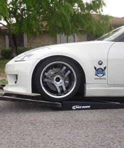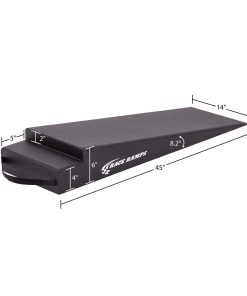 Las rampas para remolques RR-TR-6 son la tercera variación en nuestra línea de rampas de carga para automóviles. ¿Es la puerta de tu remolque demasiado empinada para llevar tu coche a la pista de carreras o al autocross? ¿Estás cansado de romper tu nariz? Race Ramps tiene la solución para ti: simplemente coloca la puerta del remolque en la muesca de estas rampas especialmente diseñadas y disminuye tu ángulo de aproximación a tan solo 8.2 grados. Estas rampas sin problemas y ligeras funcionan para autos de hasta 6,000 libras. Las rampas para remolques TR-6 son ideales para autos con poca distancia al suelo y neumáticos extra anchos. Las rampas para remolques ayudan a subir vehículos de poca distancia al suelo a remolques sin raspar la nariz en la puerta de la rampa del remolque. Las rampas para remolques son otro uso innovador de la tecnología de construcción súper ligera y 100% sólida patentada de Brute Industries. Simplemente coloca la puerta del remolque o las rampas existentes (ver foto) de tu remolque abierto en la muesca de estas rampas especialmente diseñadas para un ángulo de aproximación más gradual. Las rampas de 6″ de alto son de 45″ de largo y 14″ de ancho, reducen el ángulo de aproximación a 8.2 grados y pueden acomodar neumáticos de hasta 12″ de ancho. También están disponibles rampas para remolques personalizadas, que se hacen a pedido especial para cumplir con los requisitos de tamaño exactos del usuario. Las rampas para remolques personalizadas son el producto más personalizado de Brute Industries. La construcción patentada súper ligera y 100% sólida de las rampas para remolques garantiza que las rampas sean altamente duraderas, virtualmente indestructibles y muy estables, con la capacidad de soportar un vehículo de 6,000 lb. El recubrimiento texturizado de las rampas evita deslizamientos en los pisos, incluidos los pisos con recubrimiento de resina epoxi y RaceDeck. Tampoco se rayarán ni dañarán los pisos. Las rampas para remolques son ligeras y tienen correas incorporadas que permiten un fácil transporte y la posibilidad de colgarlas en una pared. Son fáciles de limpiar y no se oxidan.