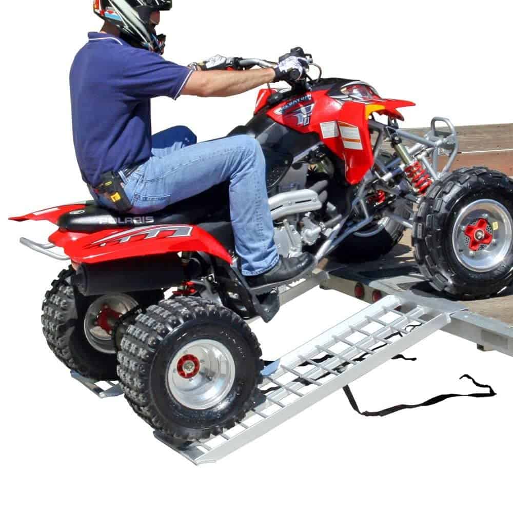 Las rampas de carga de aluminio rectas ayudan a cargar ATVs, equipos de jardín, cortadoras de césped, carritos de golf, UTVs y otros equipos todo terreno o de utilidad con un peso de hasta 2,000 lbs. en remolques para transporte. Cuentan con bordes elevados para mantener los vehículos en línea y en las rampas. Incluye (2) correas de seguridad para evitar que las rampas se salgan durante la carga. Hechas con aluminio resistente 6061-T6 para una larga durabilidad.