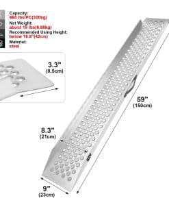 2. Construcción de Acero Duradero: Fabricadas con acero galvanizado de alta resistencia. Con una capacidad de peso máxima de 660 lbs, está diseñada para manejar sus necesidades de carga con resistencia y tenacidad. Ideal como rampa para cobertizo para cortacésped y rampa para remolque.