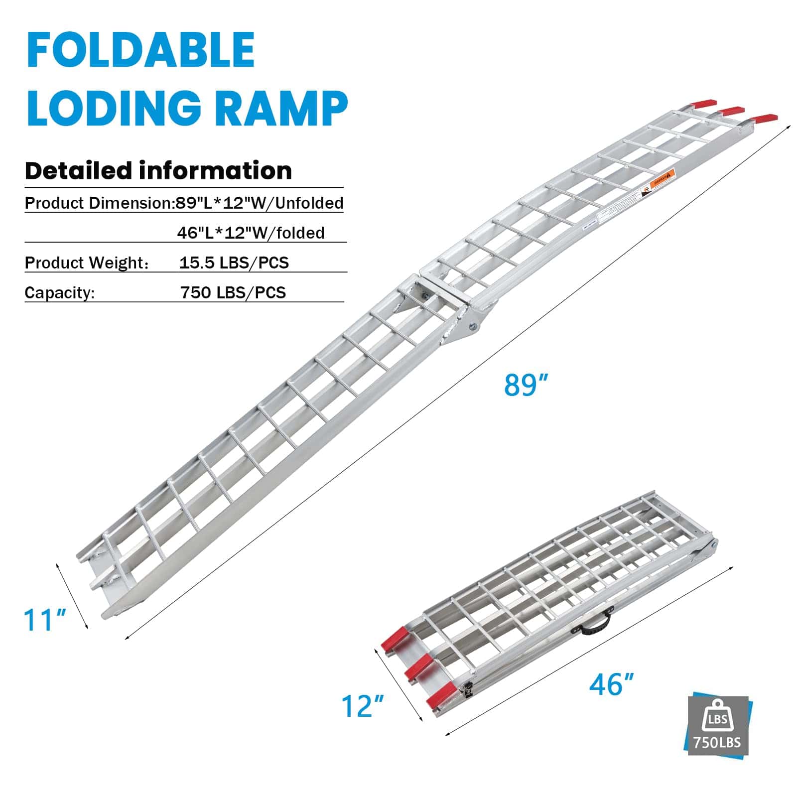 4. FÁCIL DE ALMACENAR Nuestras rampas son portátiles y duraderas, y se pueden plegar fácilmente (tamaño desplegado es 89.8″ x 12″ y tamaño plegado es 45.7″ x 12″). Cuando están plegadas, son lo suficientemente pequeñas para caber en la esquina de su automóvil o en el almacenamiento, facilitando llevarlas a cualquier lugar y acceder a ellas siempre que las necesite.