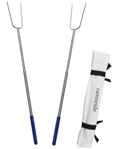 2. DISTANCIA DE SEGURIDAD DE 32 PULGADAS – Estos palos para asar en fogata tienen una distancia de seguridad de 32 pulgadas para que usted y sus hijos puedan cocinar sobre llamas abiertas de manera más segura. Los mangos largos evitan quemaduras para una cocción al aire libre más segura sobre una llama abierta.