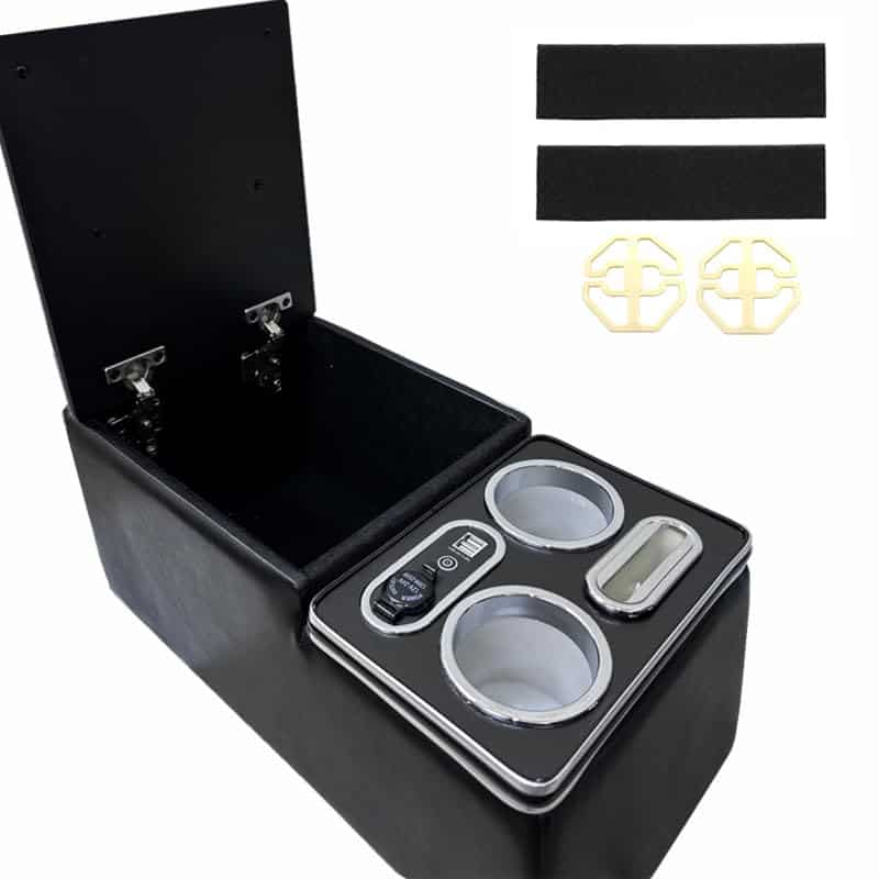 Alta Calidad Nuestra caja de reposabrazos RASNAUTO está hecha de resistente material de cuero superfibra y plástico ABS.