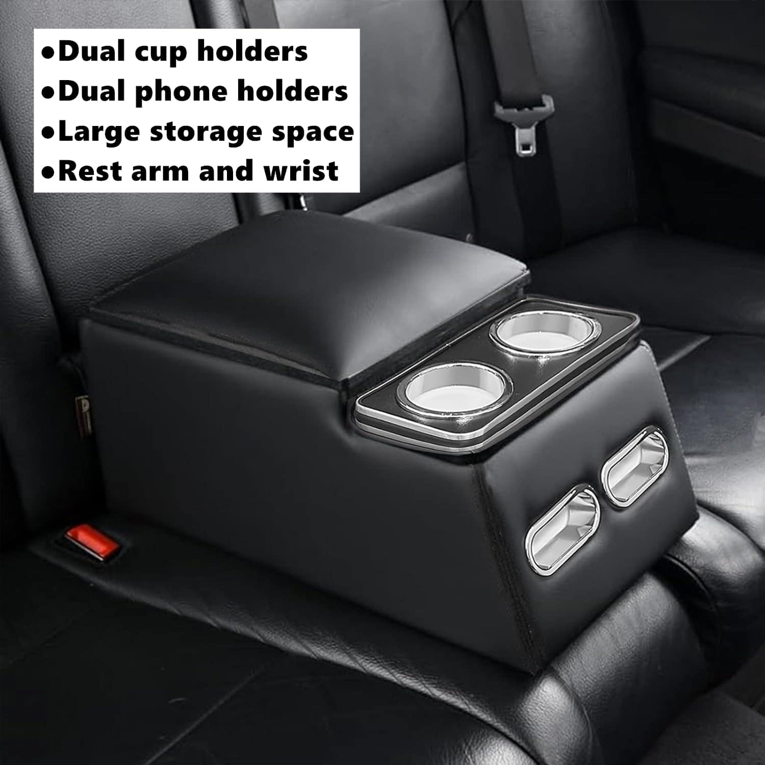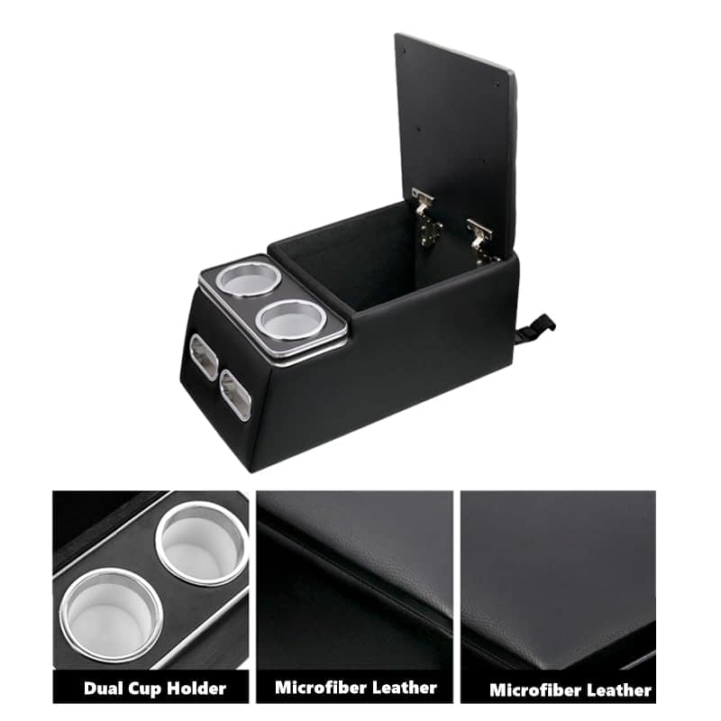 Aprovecha el espacio: Posee un amplio espacio de almacenamiento para objetos pequeños como cuadernos, botellas de agua, pañuelos de papel y tarjetas de negocio. Viene con portavasos doble que es conveniente para que los pasajeros de los asientos traseros coloquen botellas de agua o bebidas, para que el asiento trasero diga adiós al desorden.