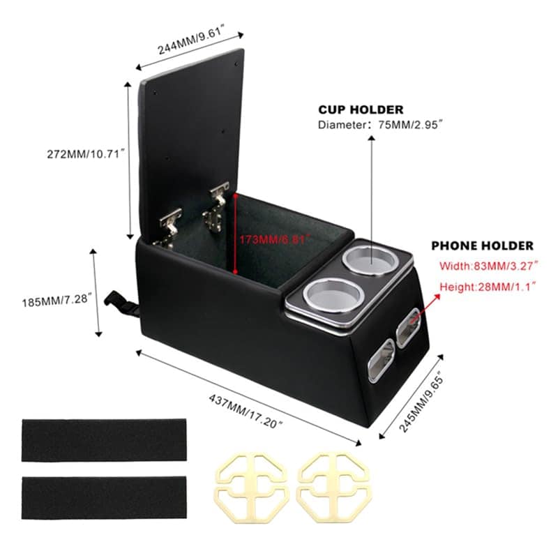 Compatible universal: Diseñado con ajuste universal, esta consola RASNAUTO se puede instalar en muchos vehículos sin una consola central OEM. Es importante asegurarse de que haya suficiente espacio para una instalación adecuada.