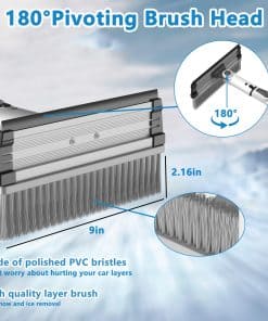 5. Cabeza de Cepillo Giratoria de 180�: En la parte inferior está la cabeza de cepillo giratoria, la rotación de 180 grados se bloquea en las direcciones izquierda y derecha para quitar la nieve desde diferentes ángulos, fácil de usar y hacer que la eliminación de nieve sea más fácil