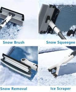 1. Cepillo de Nieve Suave para Coche: El Cepillo de Nieve cuenta con cerdas de PVC pulidas que están especialmente diseñadas para ser más finas y suaves, por lo que no dañarán su parabrisas ni rayarán la pintura de su coche. No solo puede quitar la nieve, sino que también puede usar el cepillo de nieve para quitar agua o hojas de su parabrisas.