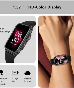 4. FUNCIONES INTELIGENTES: Este rastreador de fitness sirve como un excelente asistente de vida con diversas funciones inteligentes como pronósticos del clima, entrenamiento de respiración, reproductor de música, recordatorio del ciclo fisiológico femenino, linterna, despertador, control de obturador, encontrar teléfono, temporizador, cronómetro, recordatorio de hidratación, alerta de sedentarismo, caras de reloj personalizables y más.