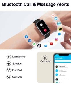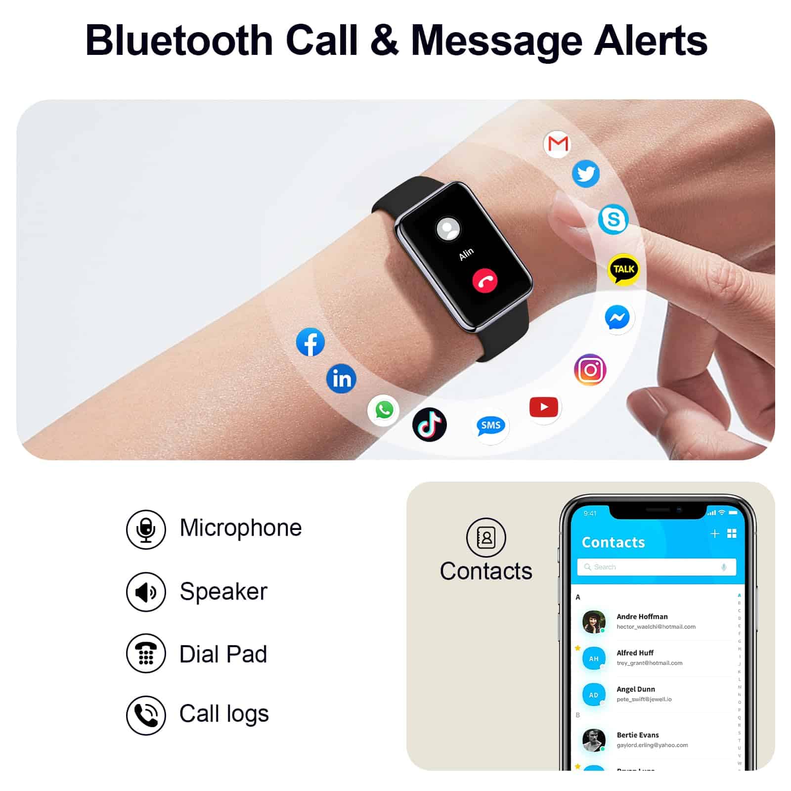 3. Llamadas de muñeca y notificaciones de la APP: Mantente conectado de forma fluida utilizando el reloj para correr para hacer/contestar llamadas por Bluetooth y recibir mensajes de SMS, TEXTO y APP (Facebook, WhatsApp, Twitter, etc) convenientes para tu vida y nunca te pierdas una alerta importante. Nota: Después de conectar Bluetooth, por favor, activa la notificación de mensajes y llamadas en la APP.