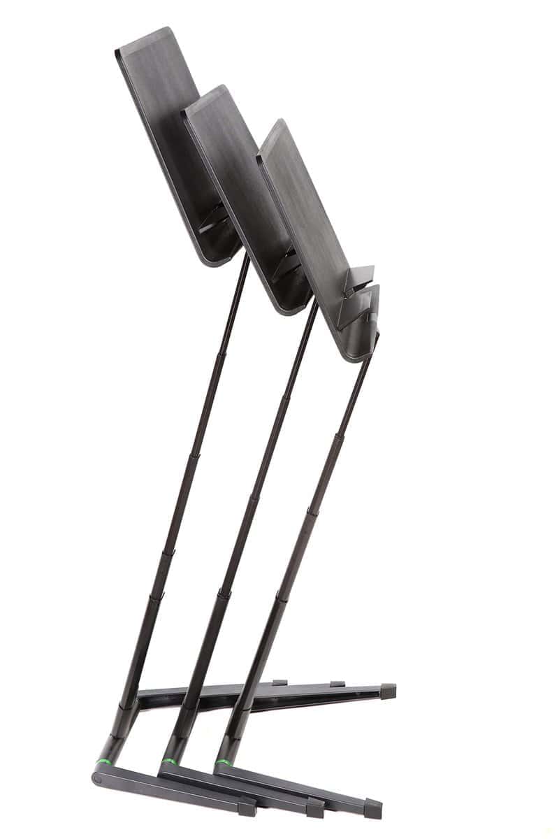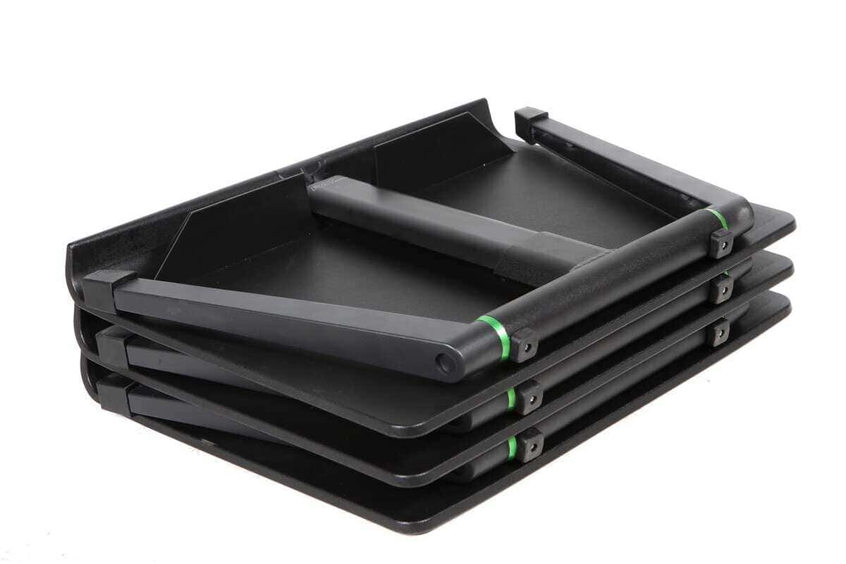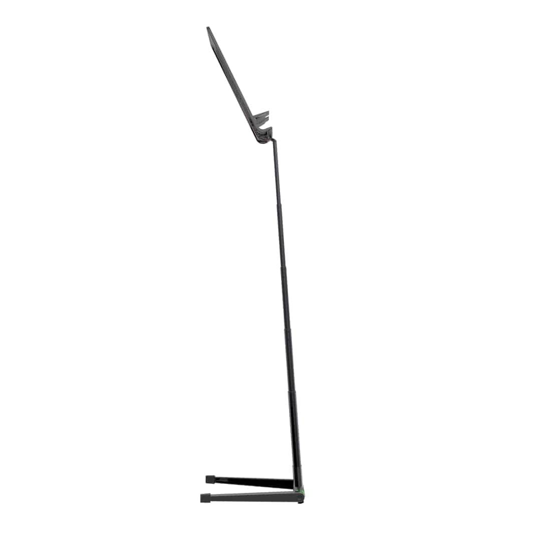 El Jazz Stand es un atril de música virtualmente irrompible. La bandeja está hecha de un polímero, que no suena cuando se golpea en comparación con un atril de metal. Los bloqueos de fricción totalmente ajustables mantienen el atril en el ángulo y altura deseados sin necesidad de tornillos o palancas para ajustar. El atril es extremadamente ligero y ofrece estabilidad estándar de la industria, con pies de goma en la base que preservan el piso. A diferencia de otros atriles, el Jazz Stand puede colapsar al tamaño de la bandeja en 3 movimientos simples sin necesidad de ser desmontado. Los atriles se pueden apilar verticalmente uno encima del otro, lo cual es ideal cuando hay poco espacio de almacenamiento. Nota: debido al diseño de nuestros atriles con tallos telescópicos, los dos pequeños tornillos sin cabeza en la parte superior del tallo pueden aflojarse con el tiempo al usar la bandeja o la sección de la cabeza para subir el tallo. Por lo tanto, estos atriles pueden necesitar ocasionalmente un mantenimiento mínimo usando una llave Allen de 2.5 mm para apretar los tornillos.