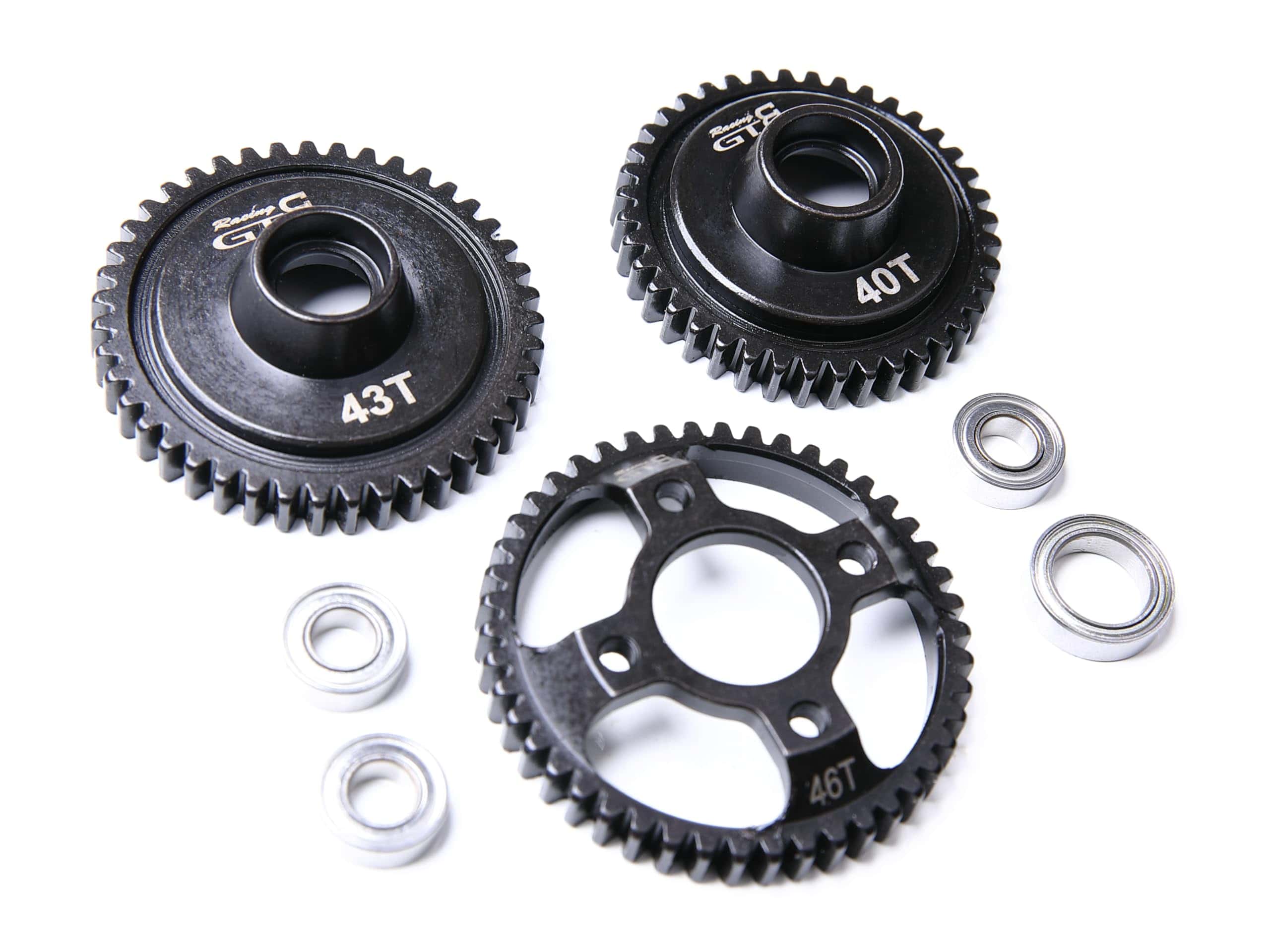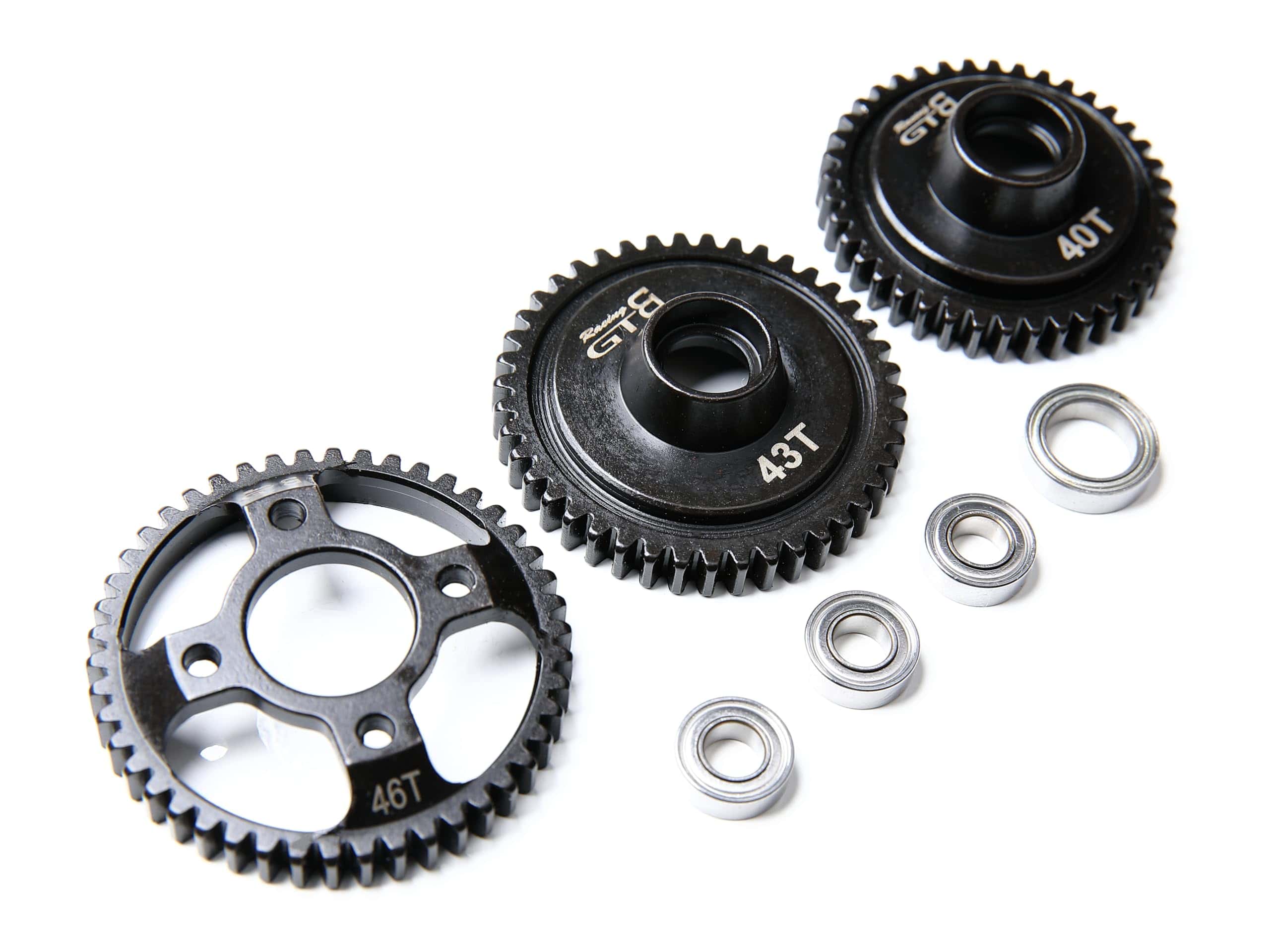 RC Car Kyosho Mad Force Kruiser de acero endurecido con upgrade de piezas de metal, incluye un set de engranajes de 40T/43T/46T para mejor rendimiento y durabilidad. Ideal para los amantes de los coches de radiocontrol avanzados que buscan potencia y resistencia.