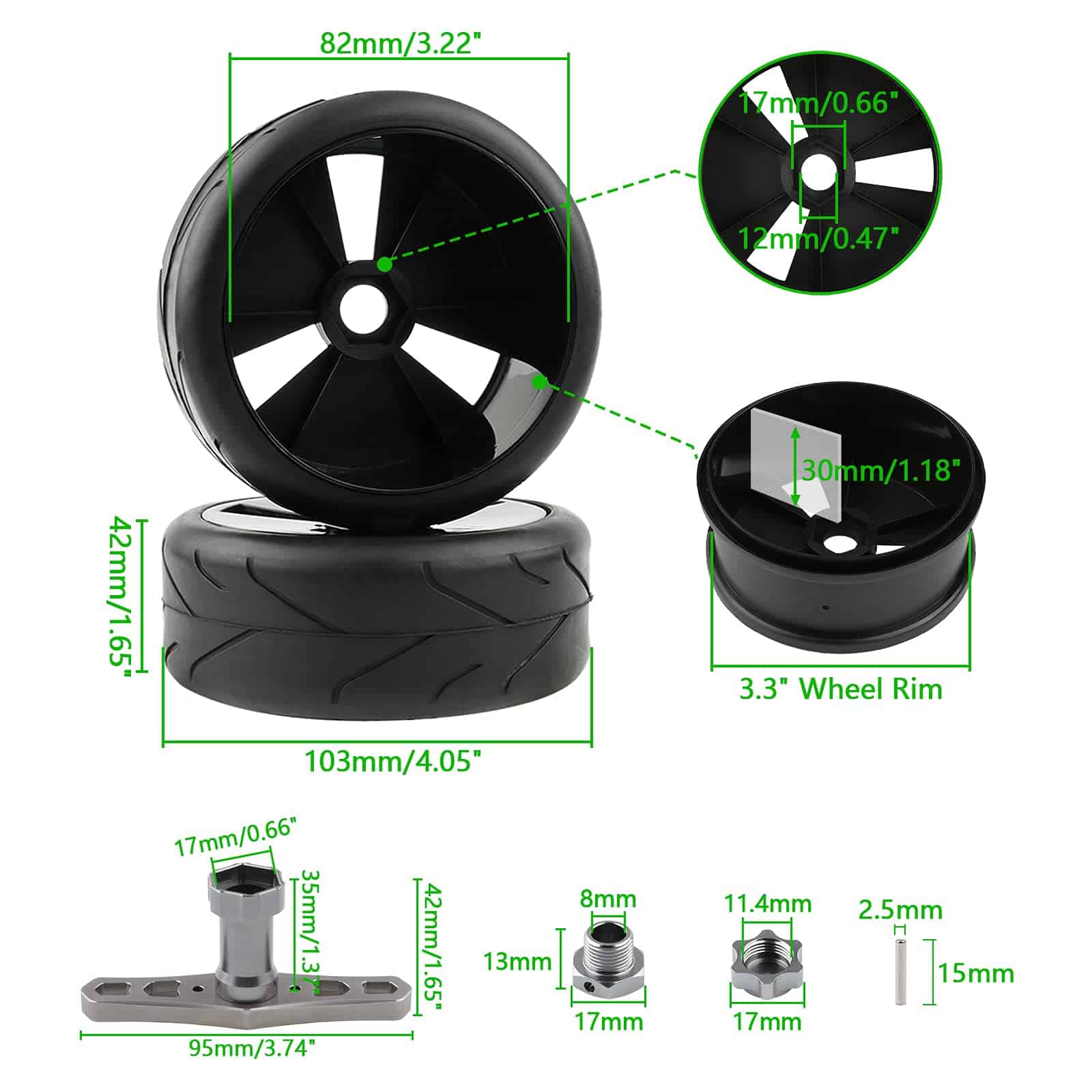 Usado para coches y buggies RC 1/8 para correr en la calle, Compatible con la mayoría de las marcas como Traxxas, Redcat, HPI, Kyosho, HSP, Tekno, Tamiya, 3Racing, etc.