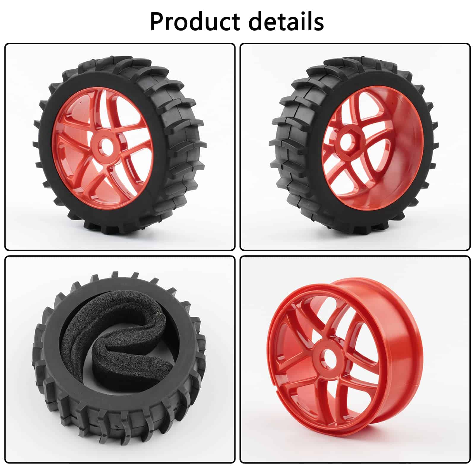 Los neumáticos y ruedas RC están hechos de goma y plástico con inserto de espuma, 5 radios, deben ser pegados antes de usar, alta resistencia al desgaste y excelente durabilidad.