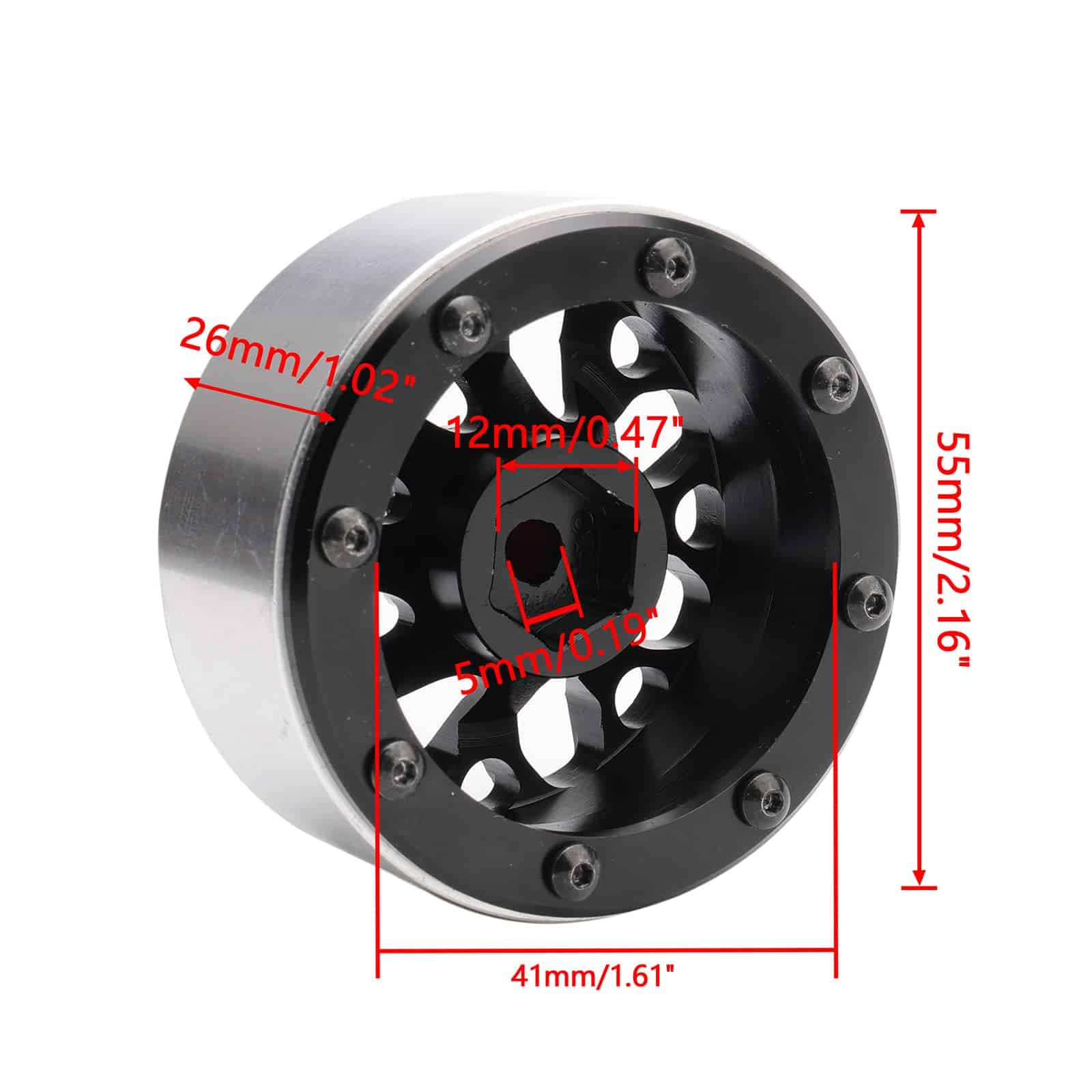 Rchobbytop Llantas Beadlock de 1.9″, 4pcs Rines de Aluminio