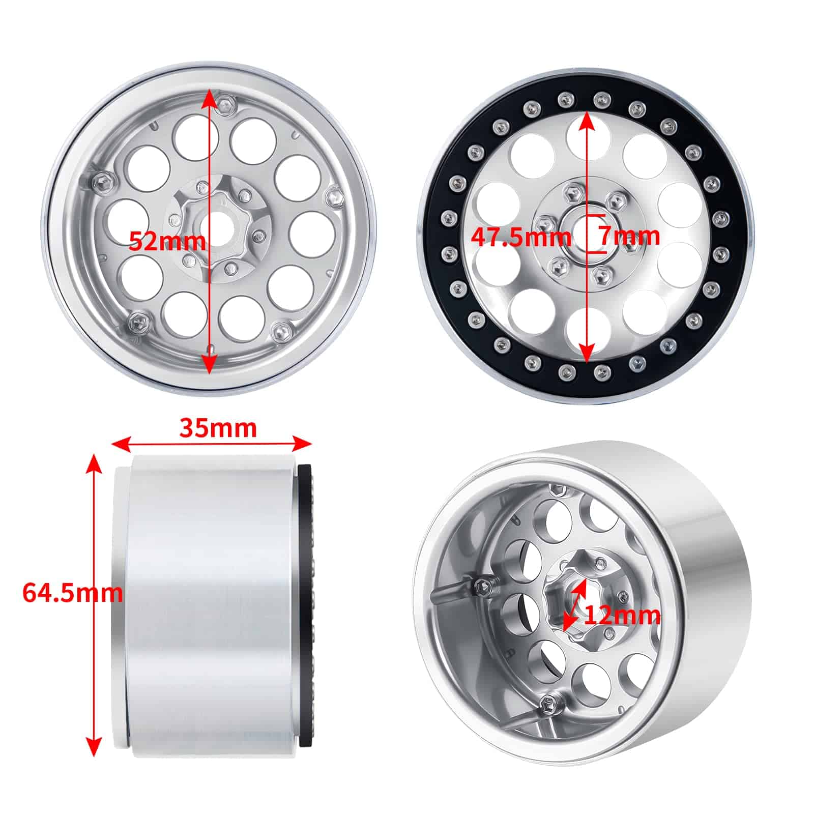 Estas son Ruedas Beadlock de 2.2 pulgadas diseñadas para Coche Crawler Wraith RC 1/10.