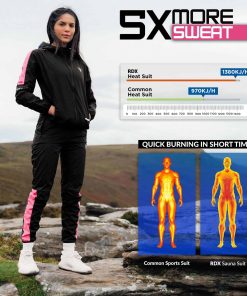 6. TRAJE SAUNA DE CALOR ELEGANTE Y ESTILOSO ¿Quieres un traje de sauna que se adapte a tu estilo de vida activo Experimenta máxima movilidad con el traje de sauna de calor para mujeres de RDX, diseñado para satisfacer las necesidades únicas de las mujeres. Con su avanzado pespunte DS Seam, cremalleras y aberturas elásticas, este traje ofrece un ajuste delgado y elegante que mejora tu forma mientras sigue siendo duradero y flexible. Este es un traje de calor que no solo se ve genial, sino que también te ayuda a aplanar tu cintura y resaltar tus abdominales!