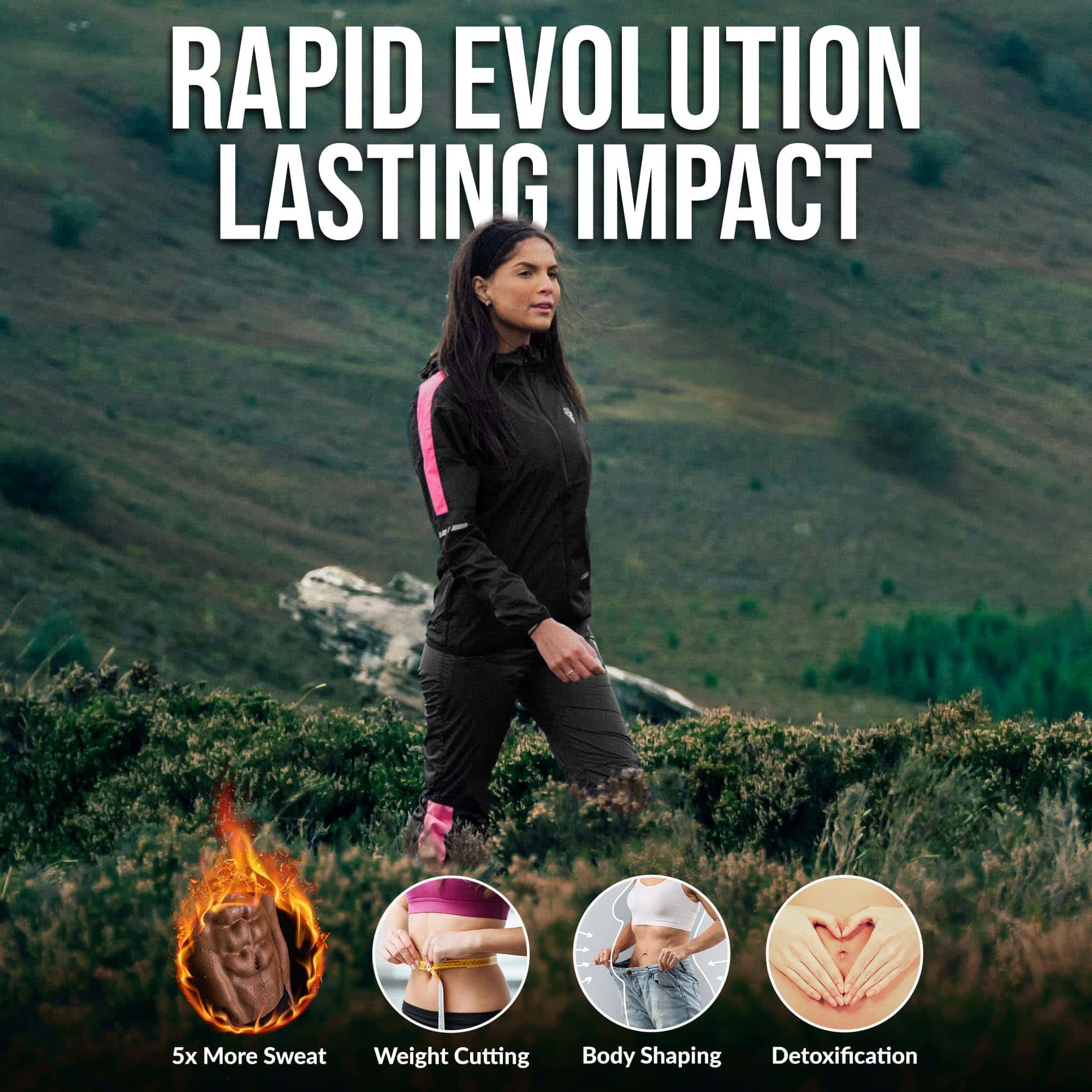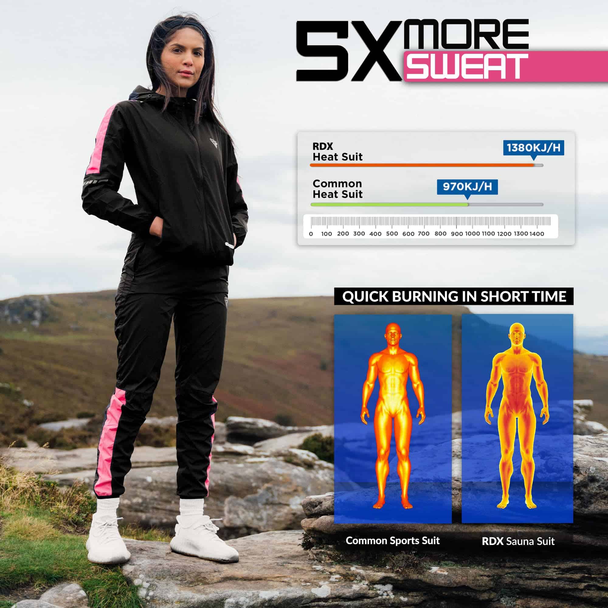 2. AUMENTO RÁPIDO DE SUDOR Y PÉRDIDA DE PESO ¿Tienes problemas con resultados lentos en tus entrenamientos Transforma tu rutina de ejercicio con el avanzado traje de sauna para mujeres de RDX, diseñado para aumentar significativamente la sudoración. ¡Este traje ayuda a lograr los efectos de sudoración de un entrenamiento intenso y prolongado en un período de tiempo más corto! Ideal para reducción rápida de peso en agua. Es crucial para atletas y boxeadores que necesitan resultados rápidos, y igualmente beneficioso para mujeres que buscan moldear y mejorar su figura!