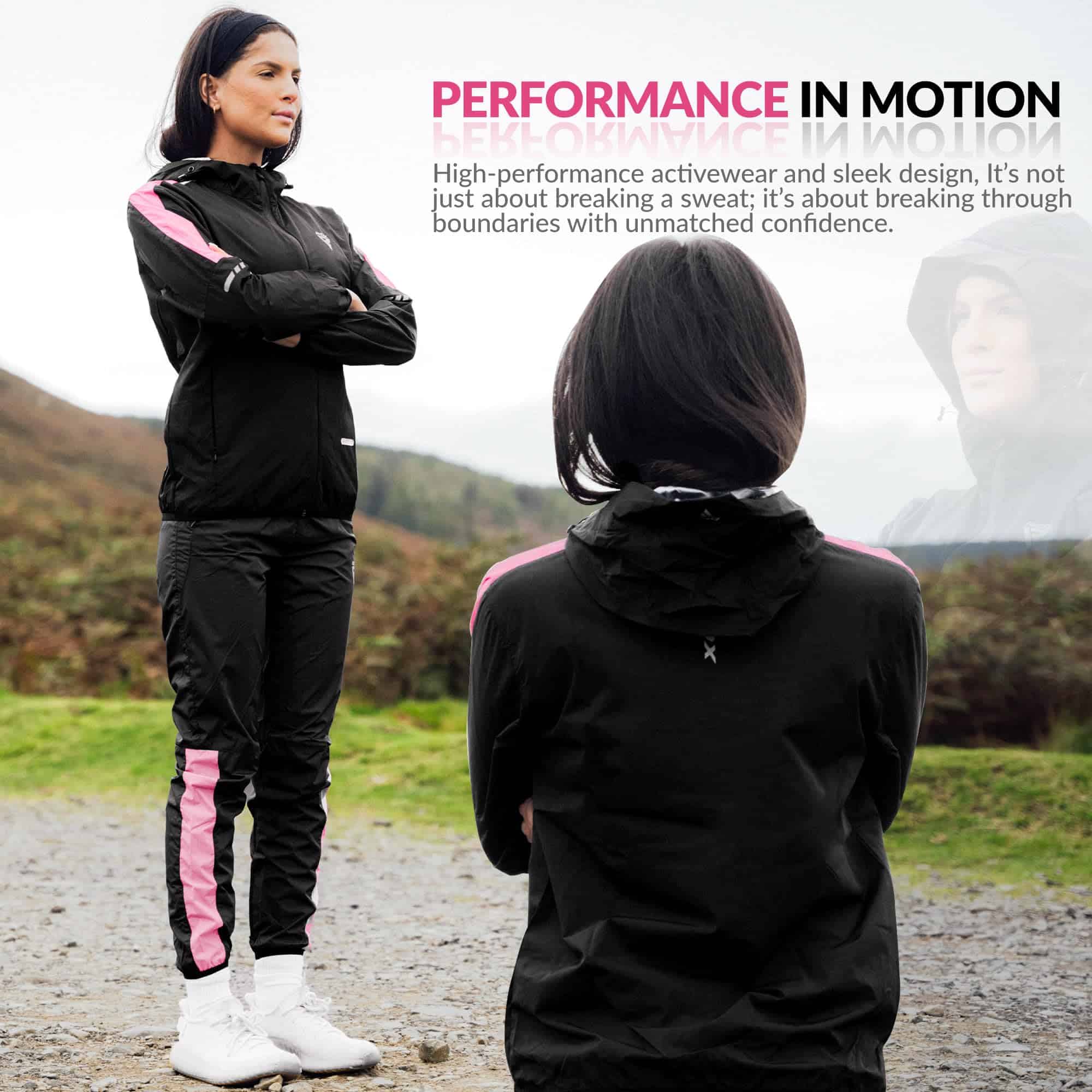 5. DISEÑO RESISTENTE A LAS INCLEMENCIAS DEL TIEMPO PARA UN ENTRENAMIENTO ININTERRUMPIDO ¿El clima afecta tu entrenamiento Este traje de calor para mujer presenta capas internas y externas resistentes al agua y al viento que resisten la lluvia, el viento o la nieve. ¡Este traje aumenta tu temperatura corporal central, mejorando la sudoración y la pérdida de peso! ¡Acepta la libertad de continuar tu viaje de fitness con confianza y estilo, independientemente de las condiciones climáticas, asegurándote de que siempre sigas en camino con tus metas de fitness y entrenamiento!