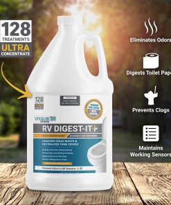 Recarga de galón de RV Digest-It+ Ultra-Concentrate Extra-Strength – 128 tratamientos de inodoro para RV – Elimina olores y liquifica desechos (128 oz). Este tratamiento para tanques negros de RV de Ultra-Concentrate es más rápido y efectivo, descomponiendo desechos y papel higiénico de todas las marcas, previniendo tapones en forma de pirámide y facilitando el vaciado. Su fórmula ultraconcentrada es mucho más fuerte que el RV Digest-It Classic, descompone los desechos que causan obstrucciones y elimina los malos olores de las portátiles y alcantarillas. Además, evita que las sondas del tanque de agua negra malinterpreten los datos al liquificar los desechos antes de que se acumulen y se adhieran a las sondas. También digiere grasa, aceite y residuos de alimentos en los tanques grises. El tratamiento RV Digest-It Plus Ultra está diseñado para trabajar con el Método Único para garantizar un camping sin obstrucciones ni malos olores, sin importar tu estilo. Con la compra de productos Unique Camping + Marine, obtienes acceso exclusivo a nuestro programa Unique Cares, donde nuestro equipo de técnicos de RV certificados en Colorado te brinda asistencia experta para resolver tus problemas de aguas residuales.
