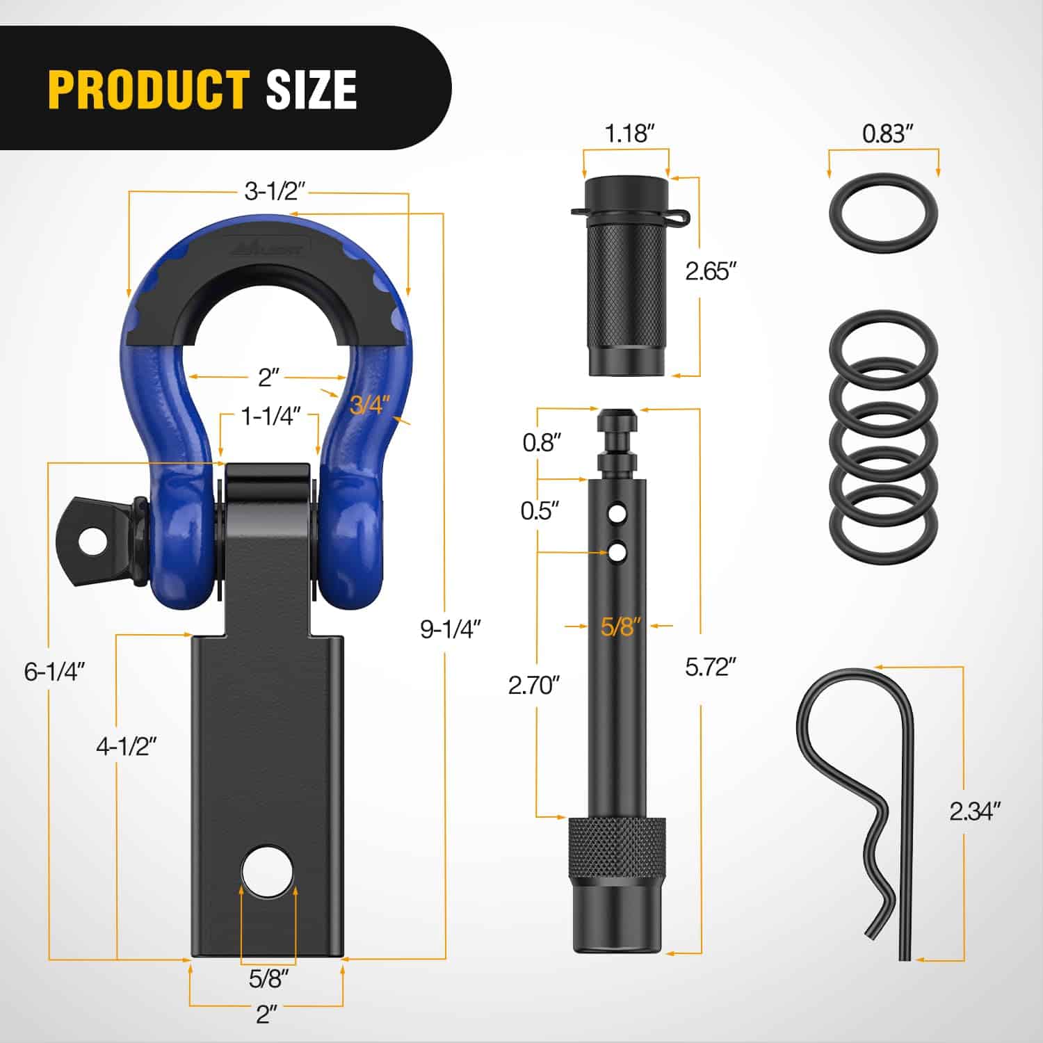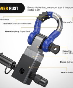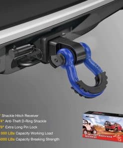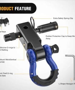 3. Amplia Aplicación – El Receptor de Enganche de Anilla se adapta a todos los receptores de remolque estándar de 2″, y los agujeros duales para el perno de enganche pueden ser flexibles para conectar la anilla en D horizontal o verticalmente, ofreciendo amplias opciones de puntos de anclaje de recuperación.