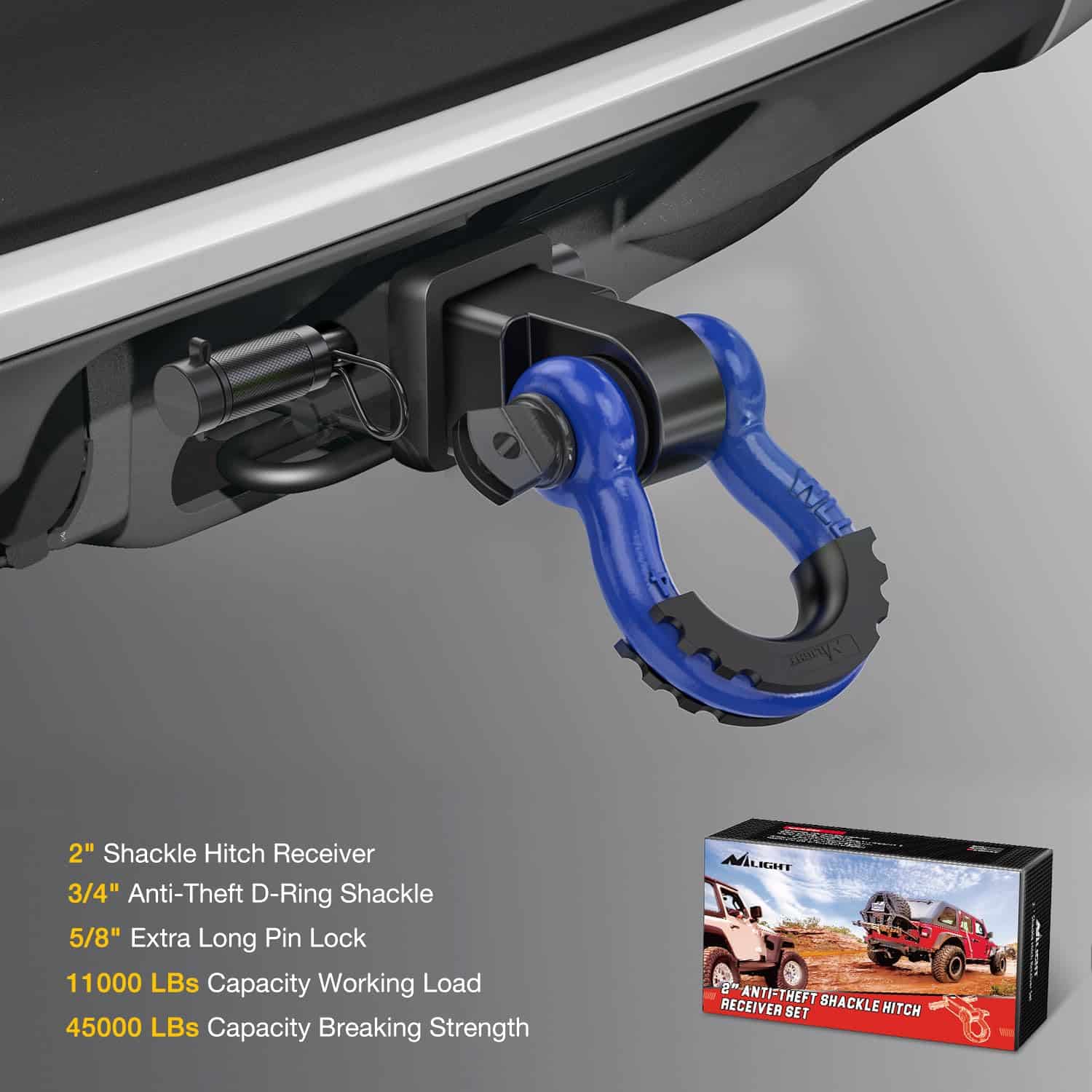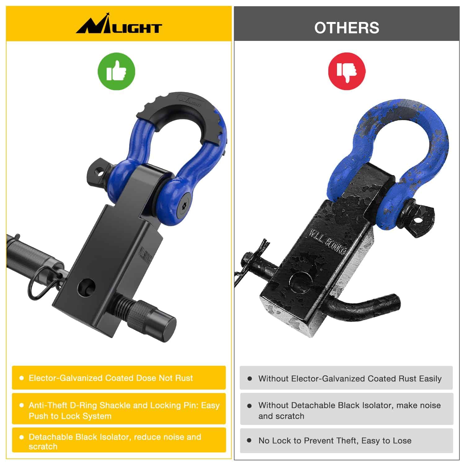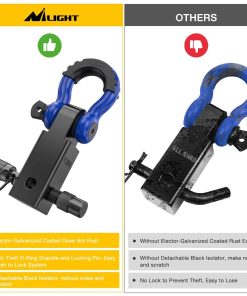 5. Incluye – Receptor de Enganche de 2″, Perno de Bloqueo de Enganche de Remolque Antirrobo de 5/8″, Anillo en D Antirrobo de 3/4″ con Kits de Aislante y 2 Arandelas, protegen el parachoques de arañazos y ruidos molestos. Garantía de 12 meses honrada por Nilight