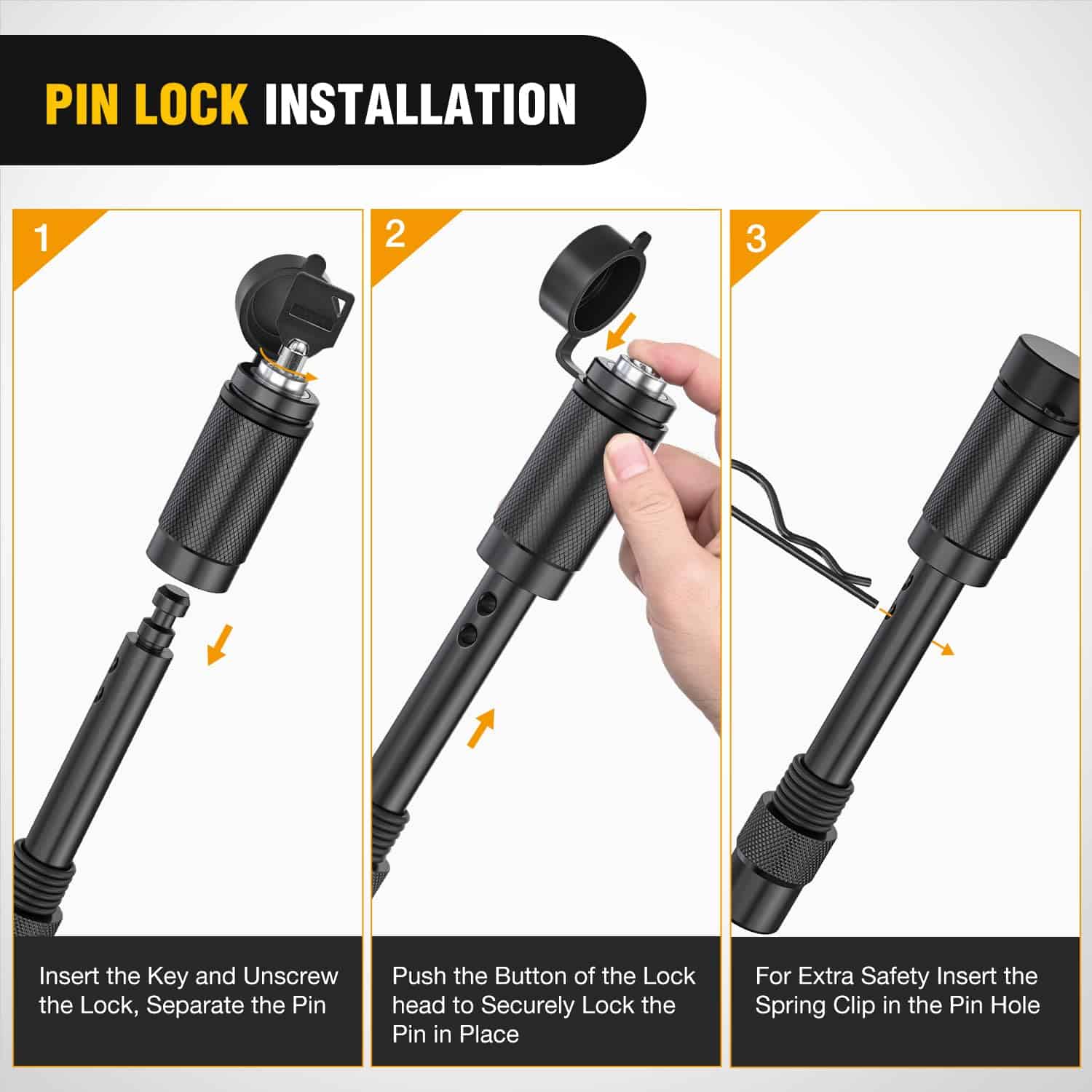 1. Excelente Potencia de Remolque – El juego de receptor de enganche de anilla fue hecho de acero forjado de alta resistencia, con una carga de trabajo nominal de 11,000 LBs y un punto de quiebre de 45,000 LBs, más del doble del peso de un camión estándar.