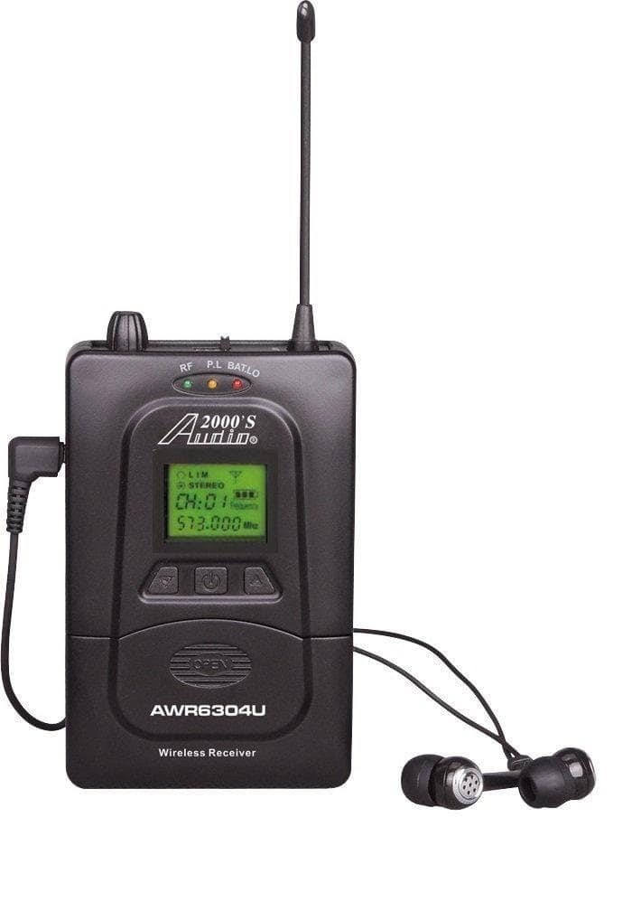 El AWR6305U5 es un receptor inalámbrico para el Sistema de monitorización inalámbrico UHF profesional Audio2000’S AWM6304U, AWM6305U y AWM6306U (con 100 frecuencias ajustables) Incluye: Jack de auriculares estéreo de 3.5 mm Jack de salida de línea de 3.5 mm Limitador de audio integrado.